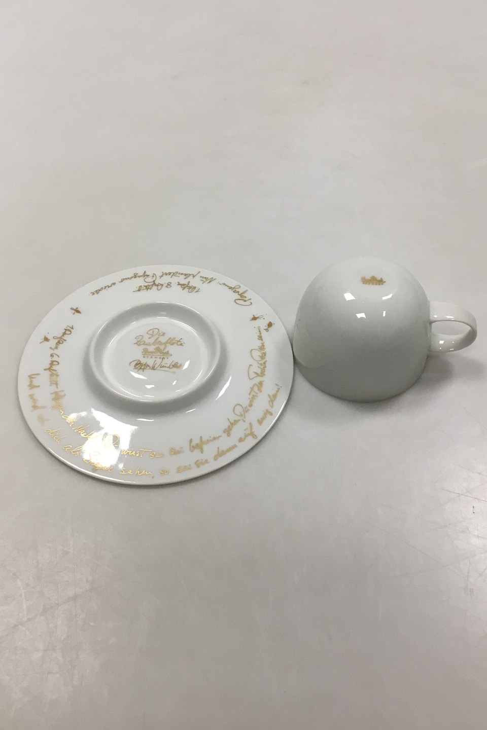 Rosenthal Bkorn Wiinblad The Magic Whistle Mocca Cup and Saucer. Measures Cup: 4.5 cm x 6 cm dia. Saucer: 12 cm ( Cup: 1.77 in. x 2.36 in. dia. Saucer: 4.72 in. )25 cm / 9.84 in.