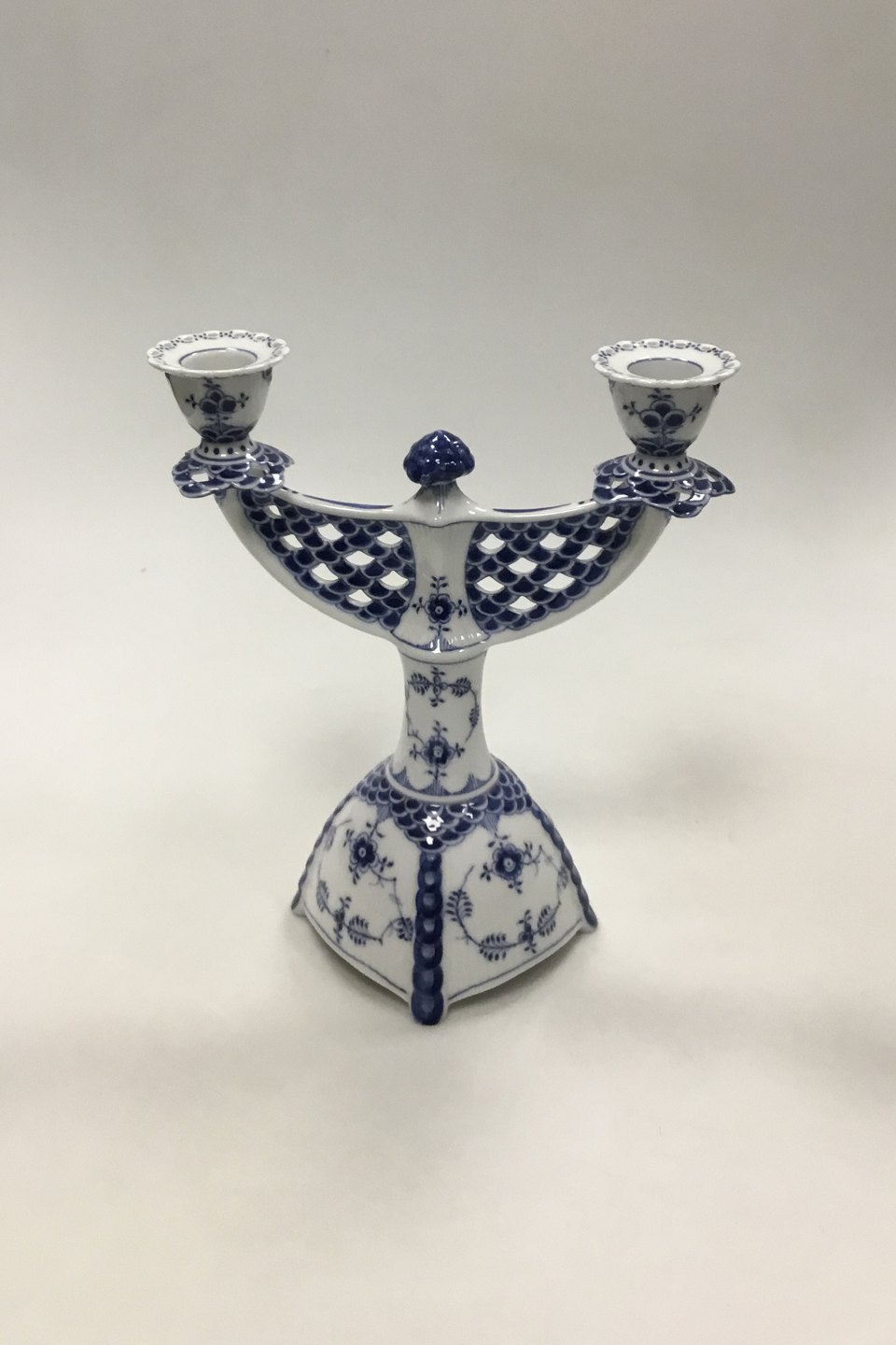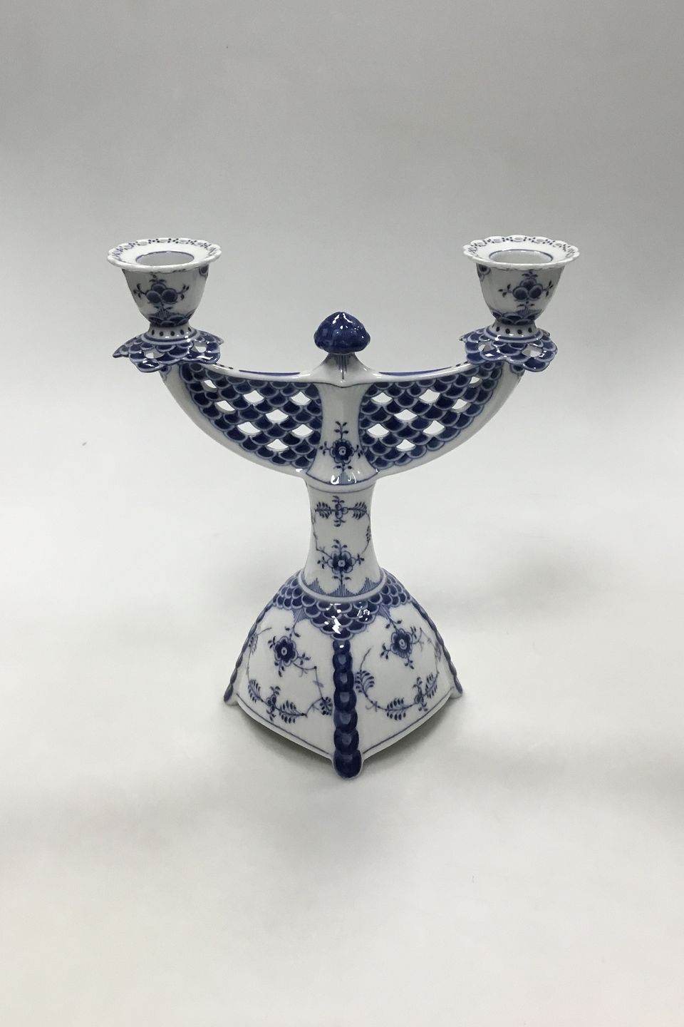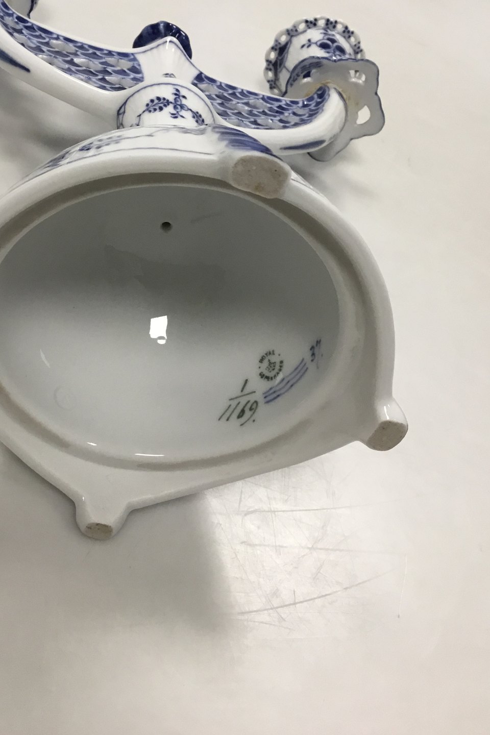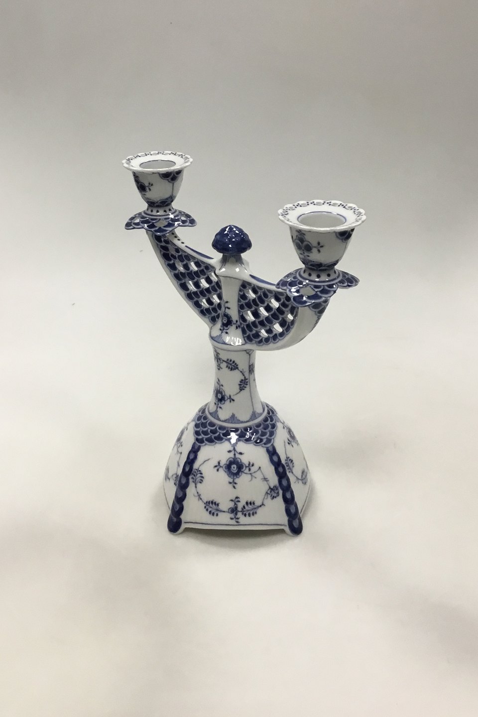 Royal Copenhagen Musselmalet Helblonde to armet Lysestage No 1169. Måler 24 cm (9.45 in). 1. sortering med afslag på den ene manchet.