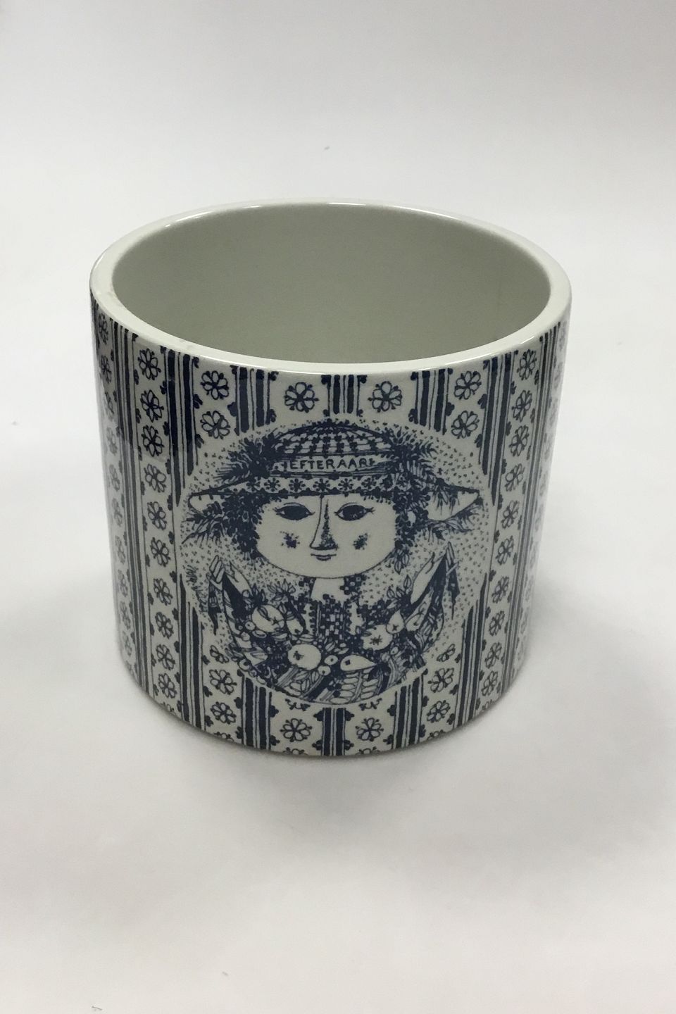 Nymølle Bjørn Wiinblad Urtepotteskjuler Efterår No 3024-699. Måler 13 cm (5.12 inch.). Har en ridse indvendigt, og en lille chip på underkanten.