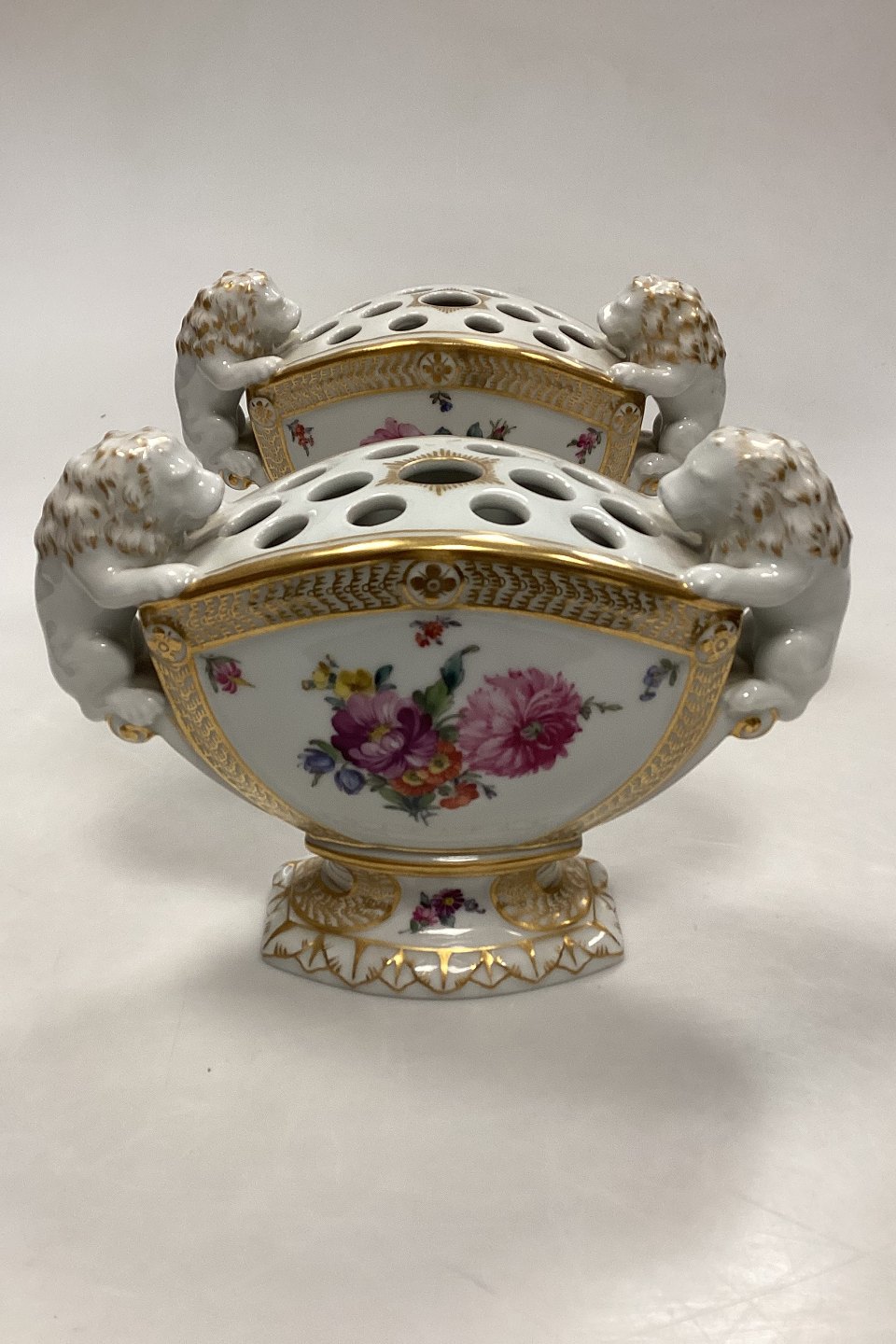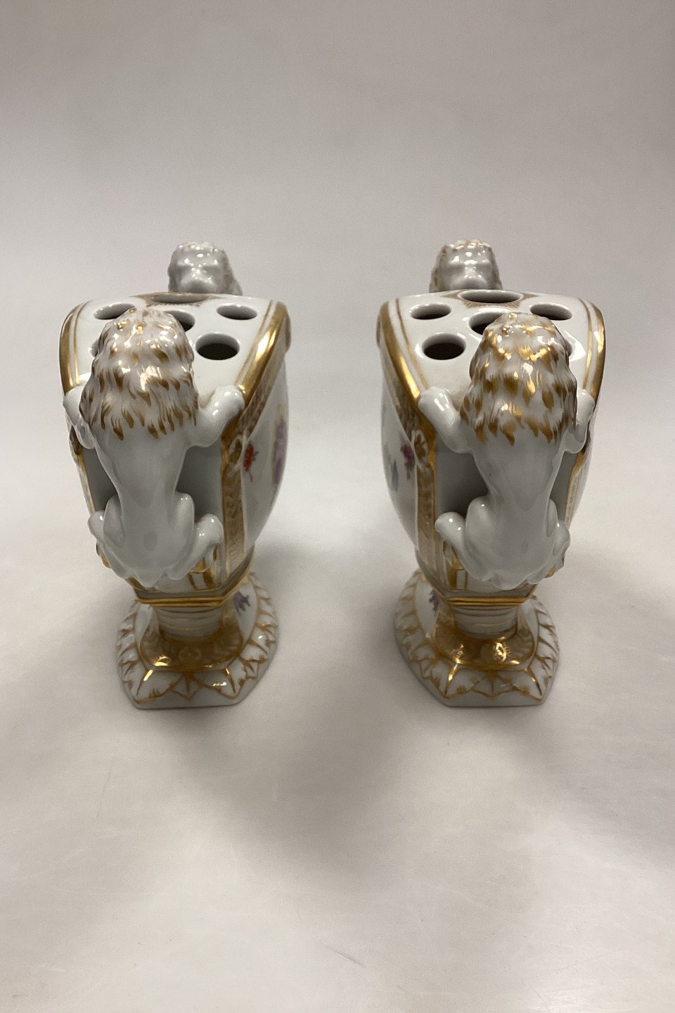 Pair of Royal Copenhagen Full Saxon Flower bouquetièrs / Vases with lionheads No. 1571