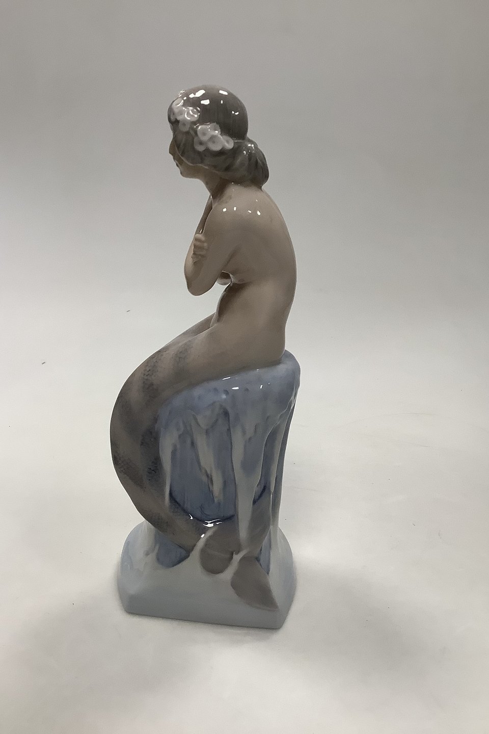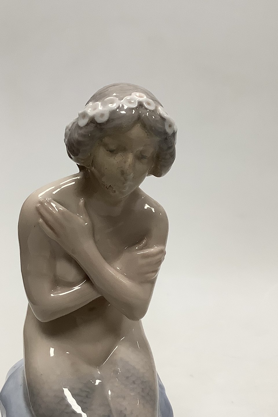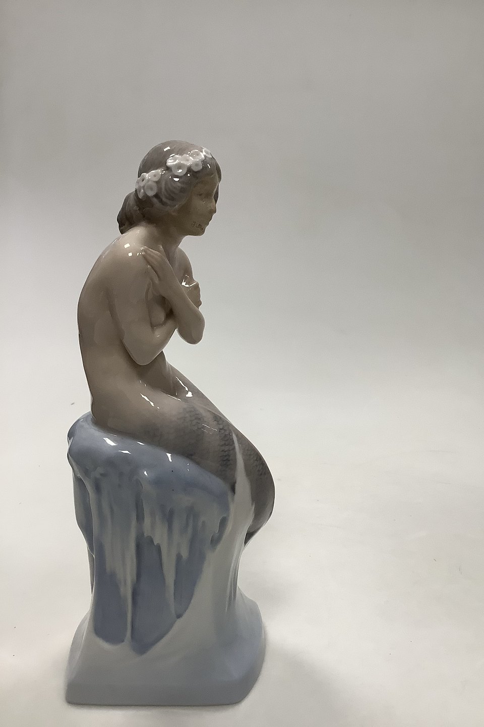 Royal Copenhagen Figurine Mermaid on Ice Rock No 1210. Measures 26cm x 10cm, designet af Christian Thomsen. Has a repaired face. See pictures.