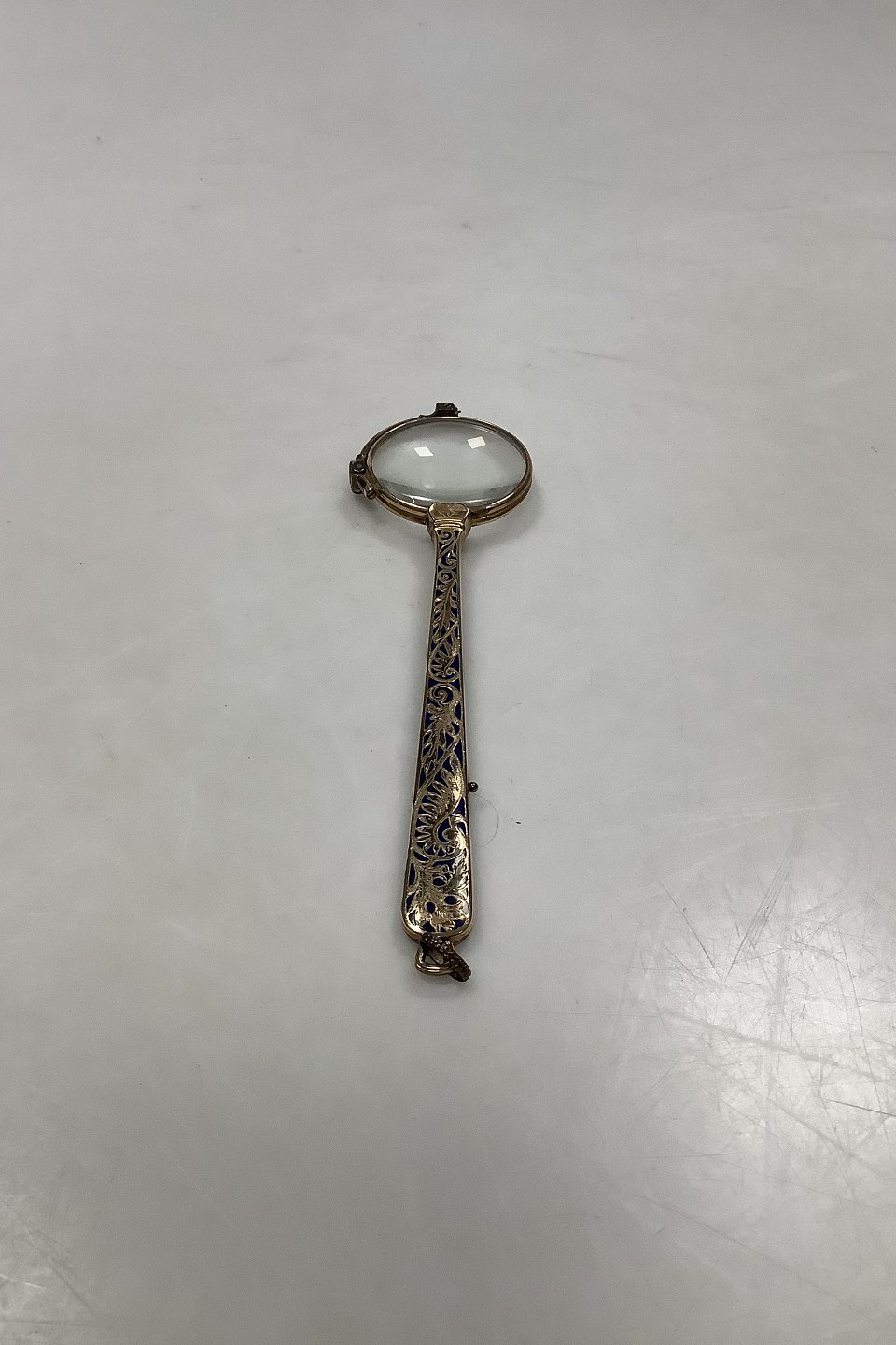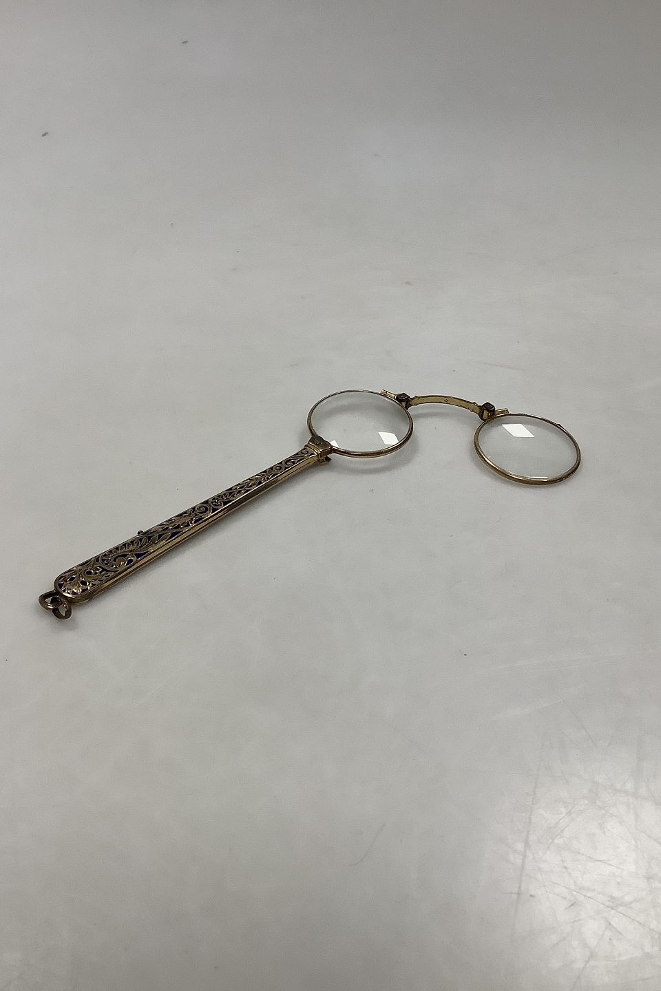 Lorgnette Glas i gyldent metal og Emalje arbejde
