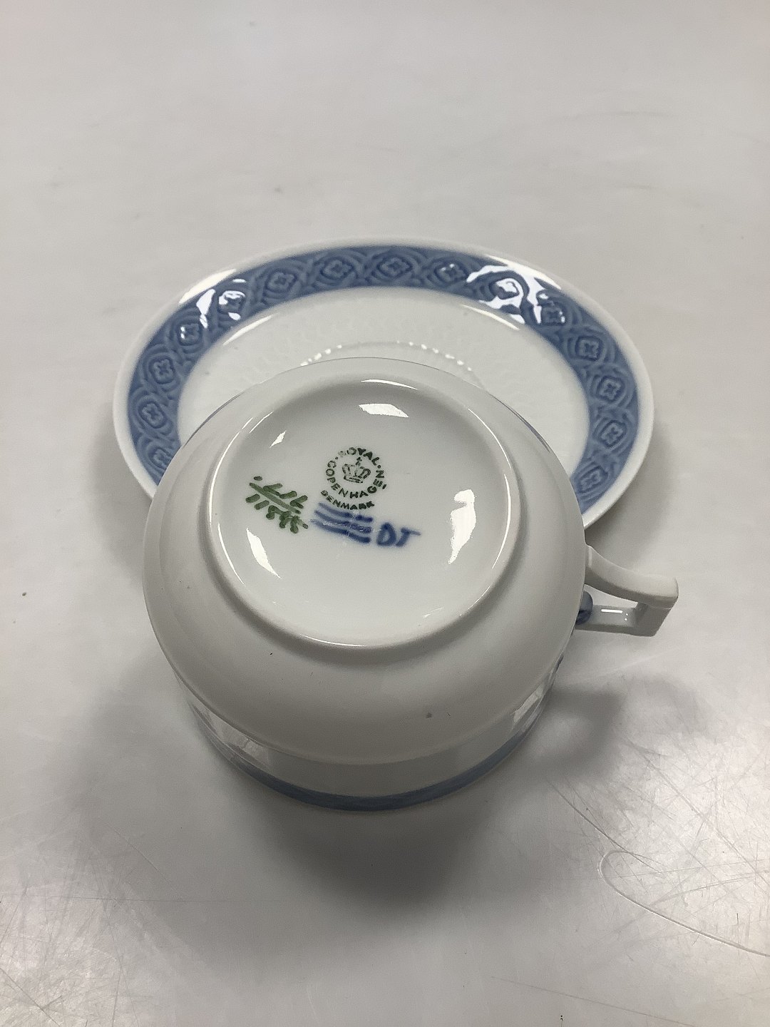 Royal Copenhagen Blue Fan Tea Cup and Saucer No. 11545. Måler 5 cm / 1 31/32 in. x 8 cm / 3 5/32 in.