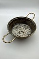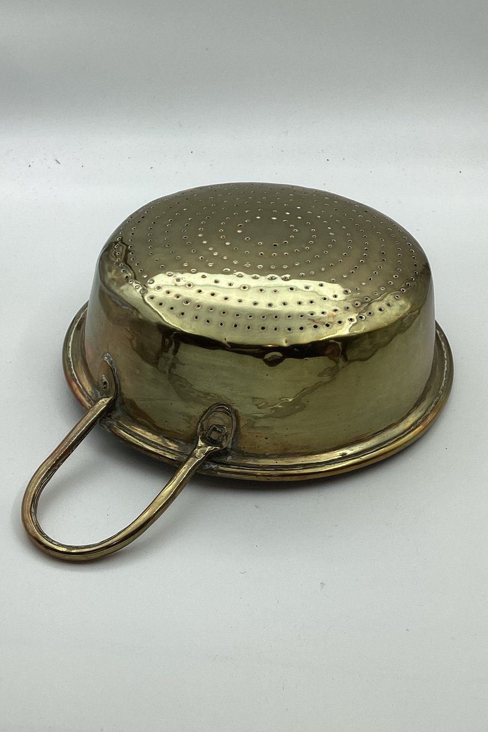 Antique copper colander with two handles. Made in Denmark in the middle of the 19th century. In good condition. Stamped by one handle. Measurements: 9 cm (3.54 inches) high and 37.5 cm (14.76 inches) long.