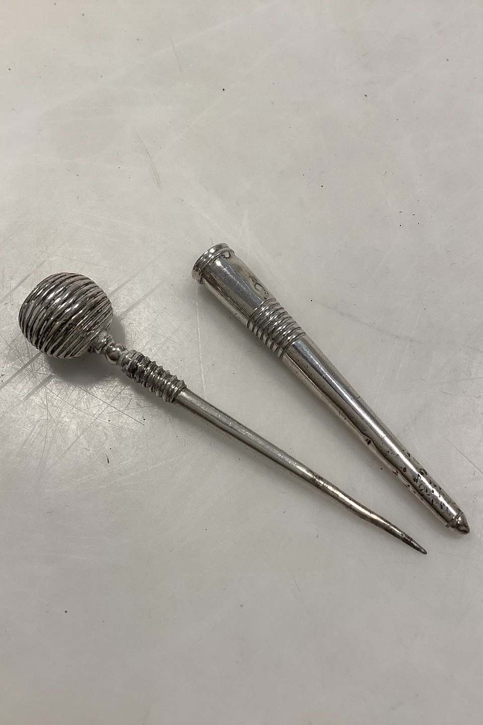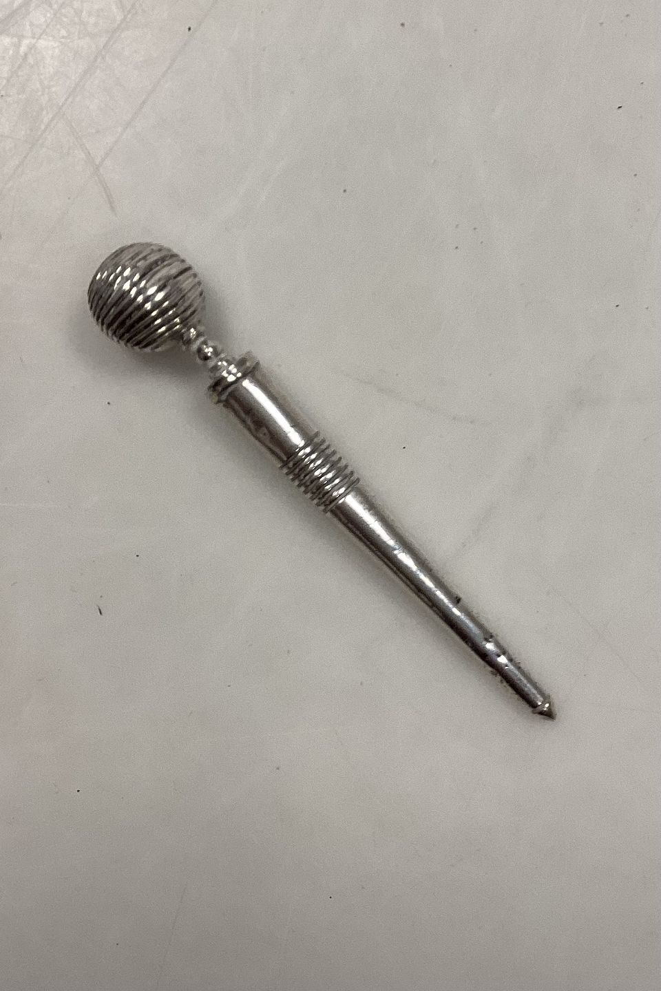 Sygrej i sølv. Til at lave huller. 7 cm lang (2.75 inch)