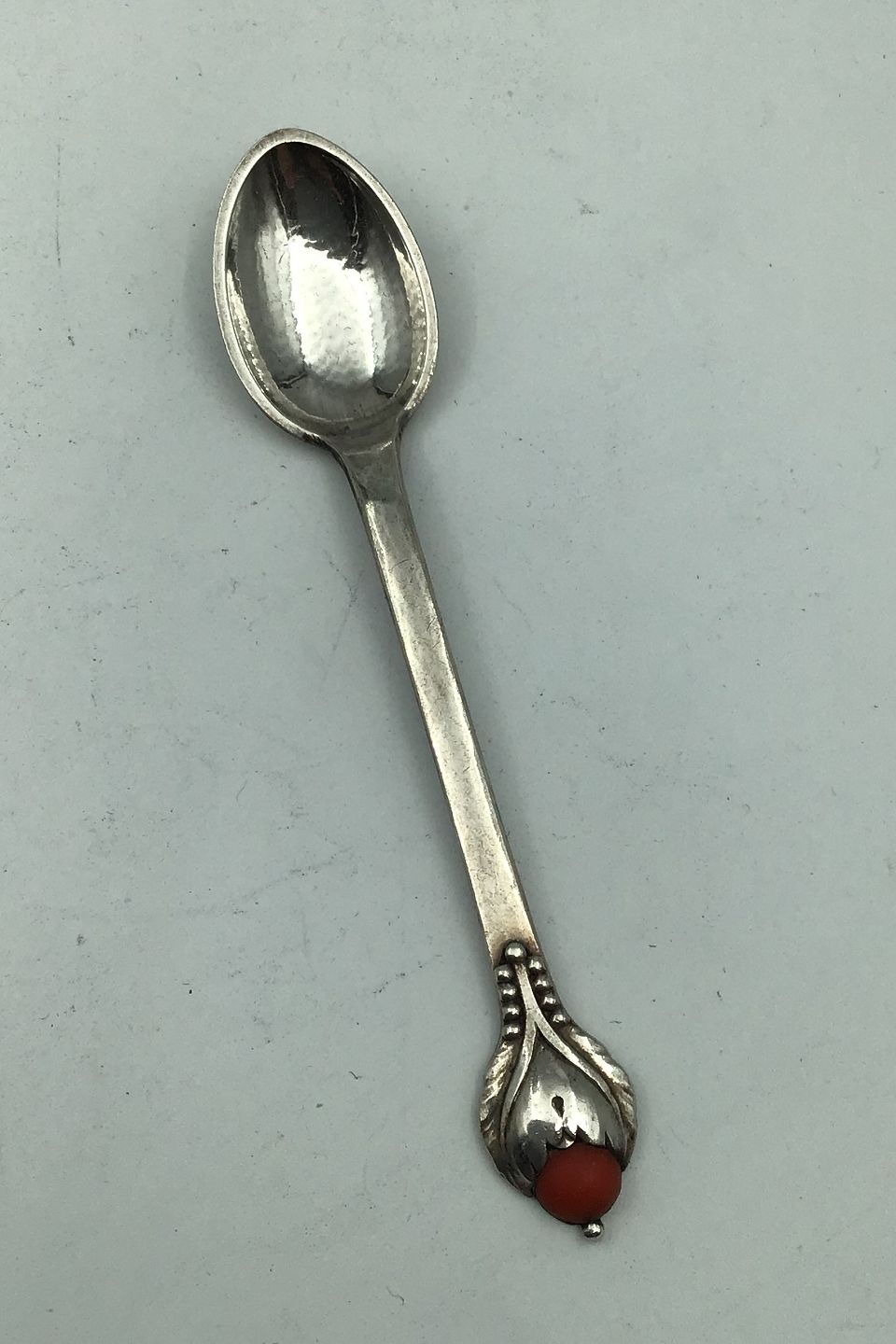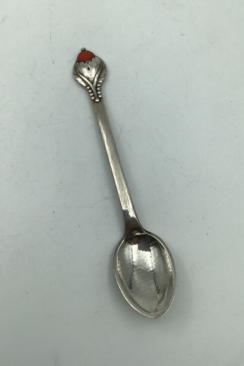 Evald Nielsen Sølv No. 3 Kaffeske med Rød Sten