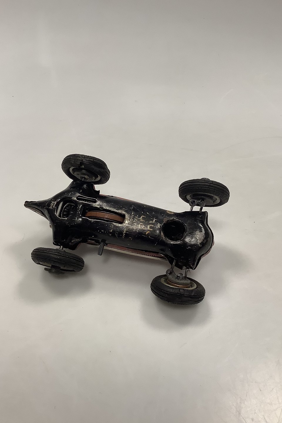 Schuco Mercedes racerbil fra 1930erne. Uden nøgle. Venstre forhjulsophæng med mindre defekt. Mål: 5,5 cm høj (2.16 inch) og 13,5 cm lang (4.92 inch)