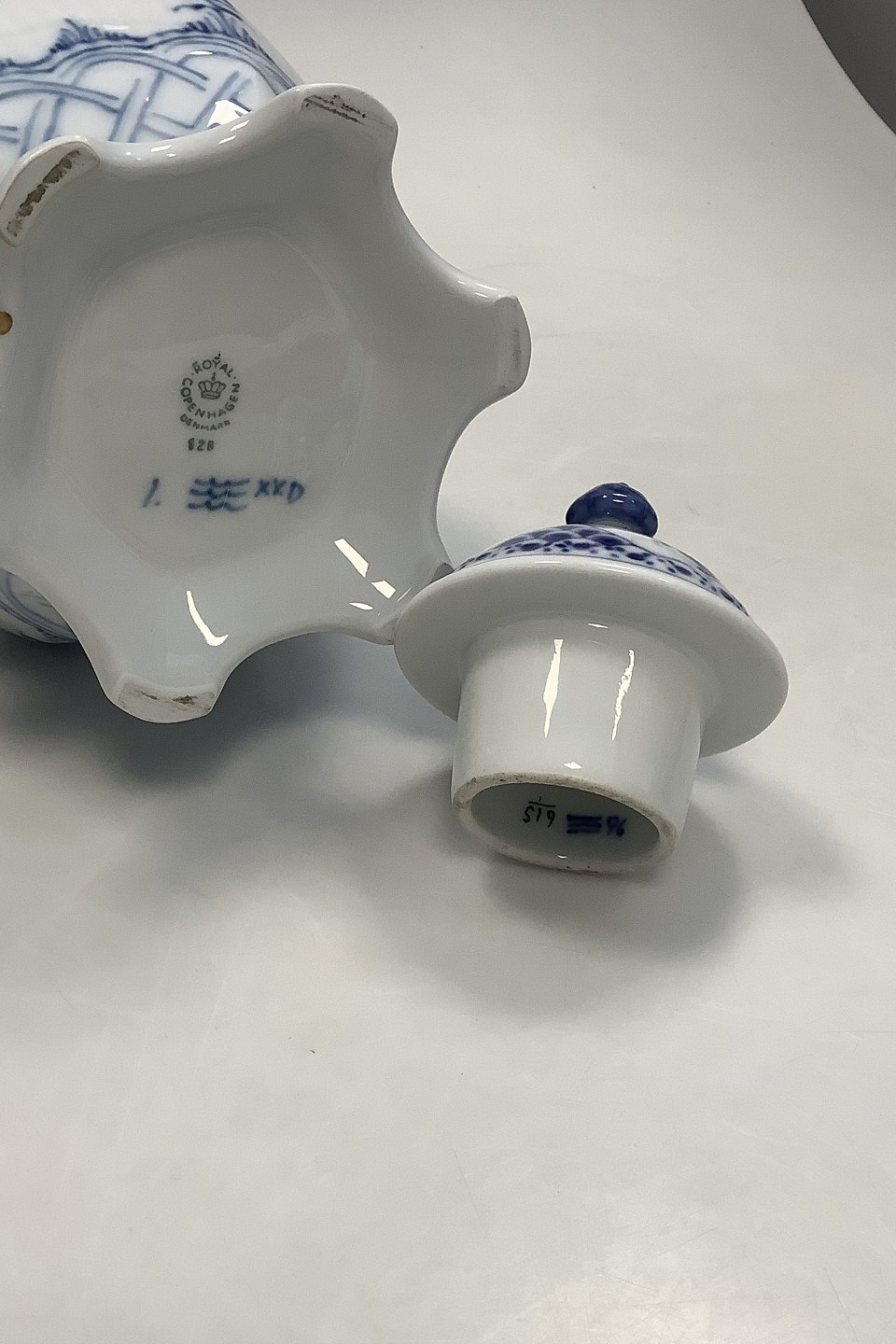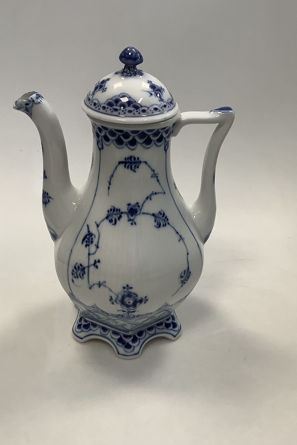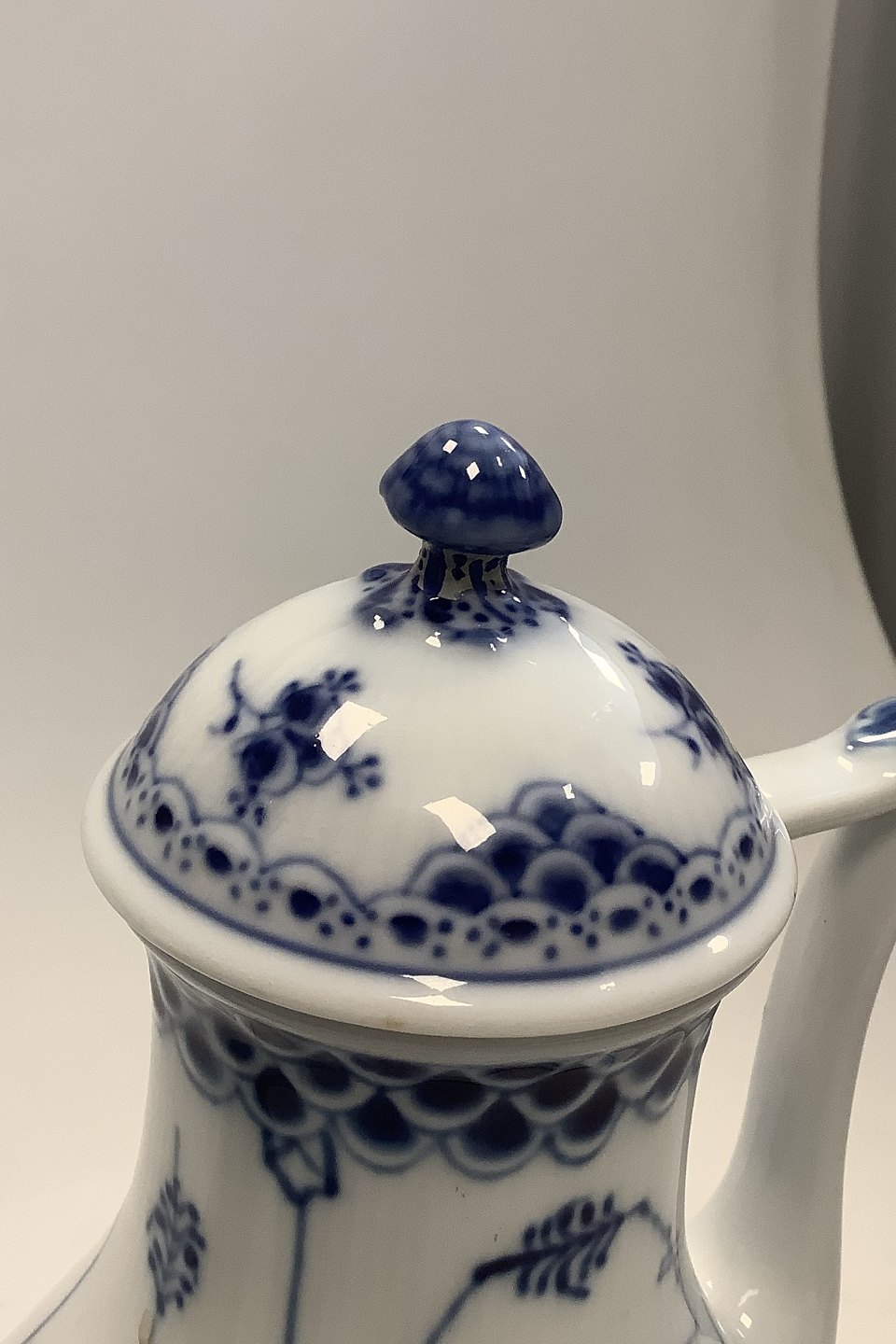 Royal Copenhagen Musselmalet Helblonde sekskantet Kaffekande No 128 with halvblonde låg. 2. sortering, da der er fejl ved kandens tud, så billede.