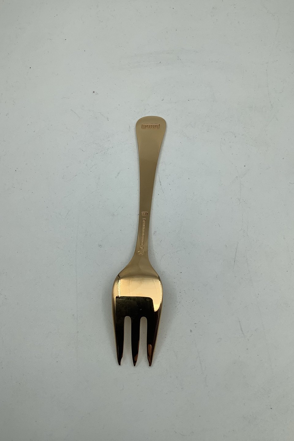 Georg Jensen Årskagegaffel 1983 i Forgyldt Sterling Sølv med emalje. Måler 13,5 cm. / 5.31 inch