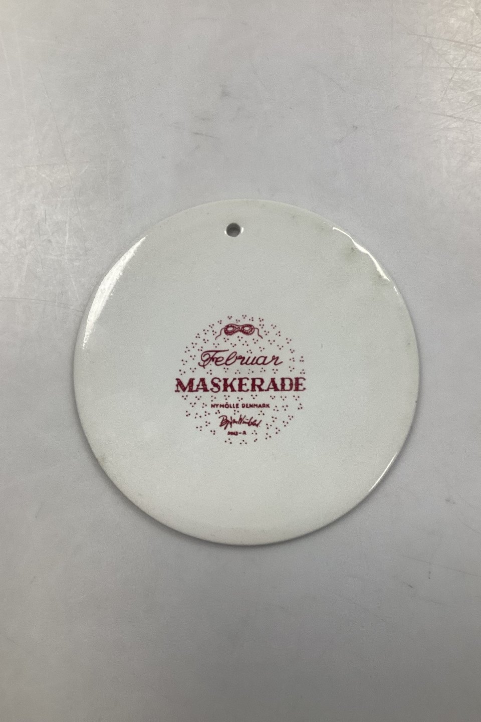 Rød månedsplatte i fajance for februar - MASKERADE. Designet af Bjørn Wiinblad for Nymølle. I god stand. Fabriksmærket på bagsiden. Mål: 15 cm (5.90 inch.)