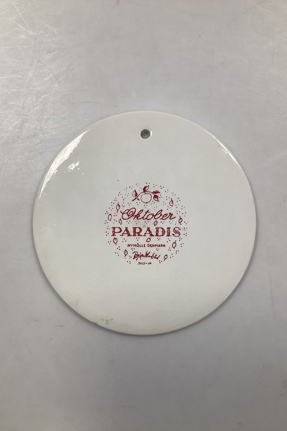 Rød månedsplatte i fajance for oktober - PARADIS. Designet af Bjørn Wiinblad for Nymølle. I god stand. Fabriksmærket på bagsiden. Mål: 15 cm (5.90 inch.)