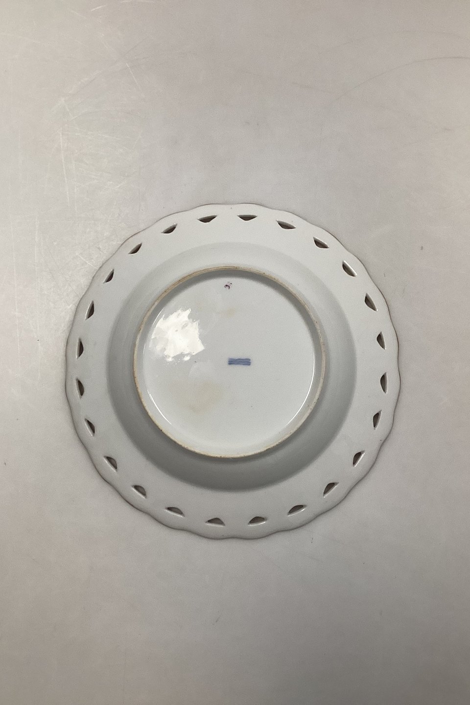 Royal Copenhagen Full Saxon Flower Deep Plate with Pierced Lace Border from 1860-1890. 22.5 cm dia (8 55/64"). In nice condition, with No to minimal wear on the gold.