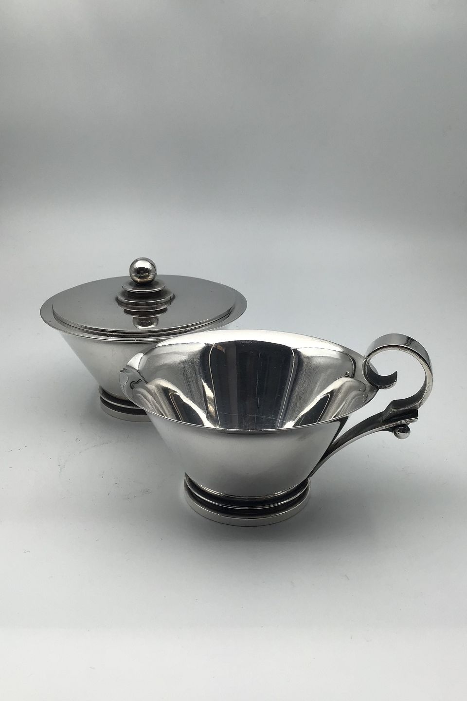 Georg Jensen Sterling Sølv Pyramide Flødekande og Sukkerskål No 600A Måler H 7 cm /2.75 inch Samlet vægt 374 gr / 13.19 oz