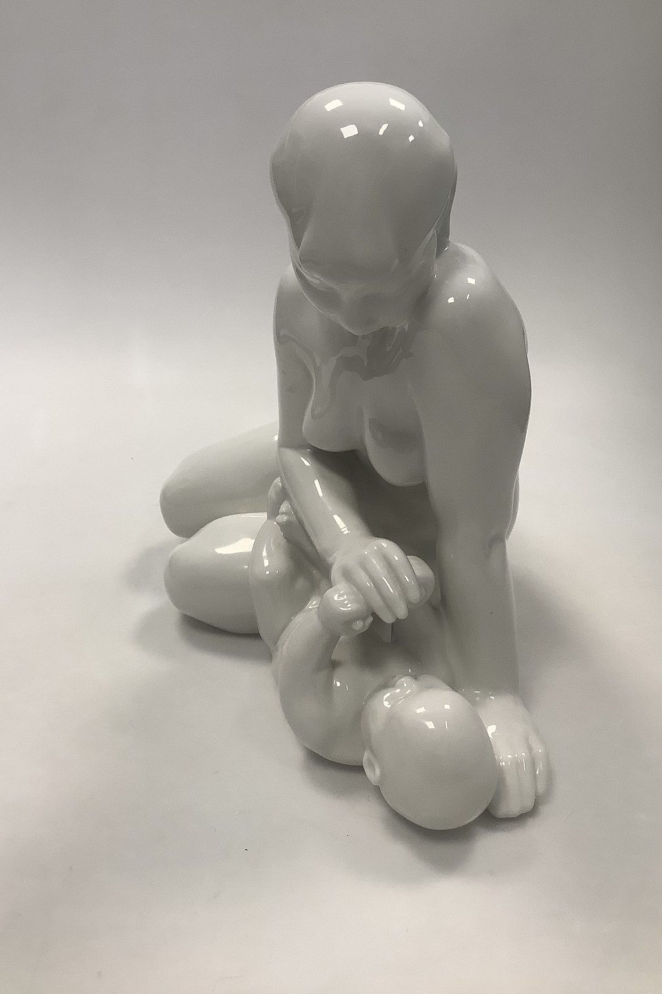 Royal Copenhagen Stor Figur af Johannes Hansen Pige med Barn No 3678