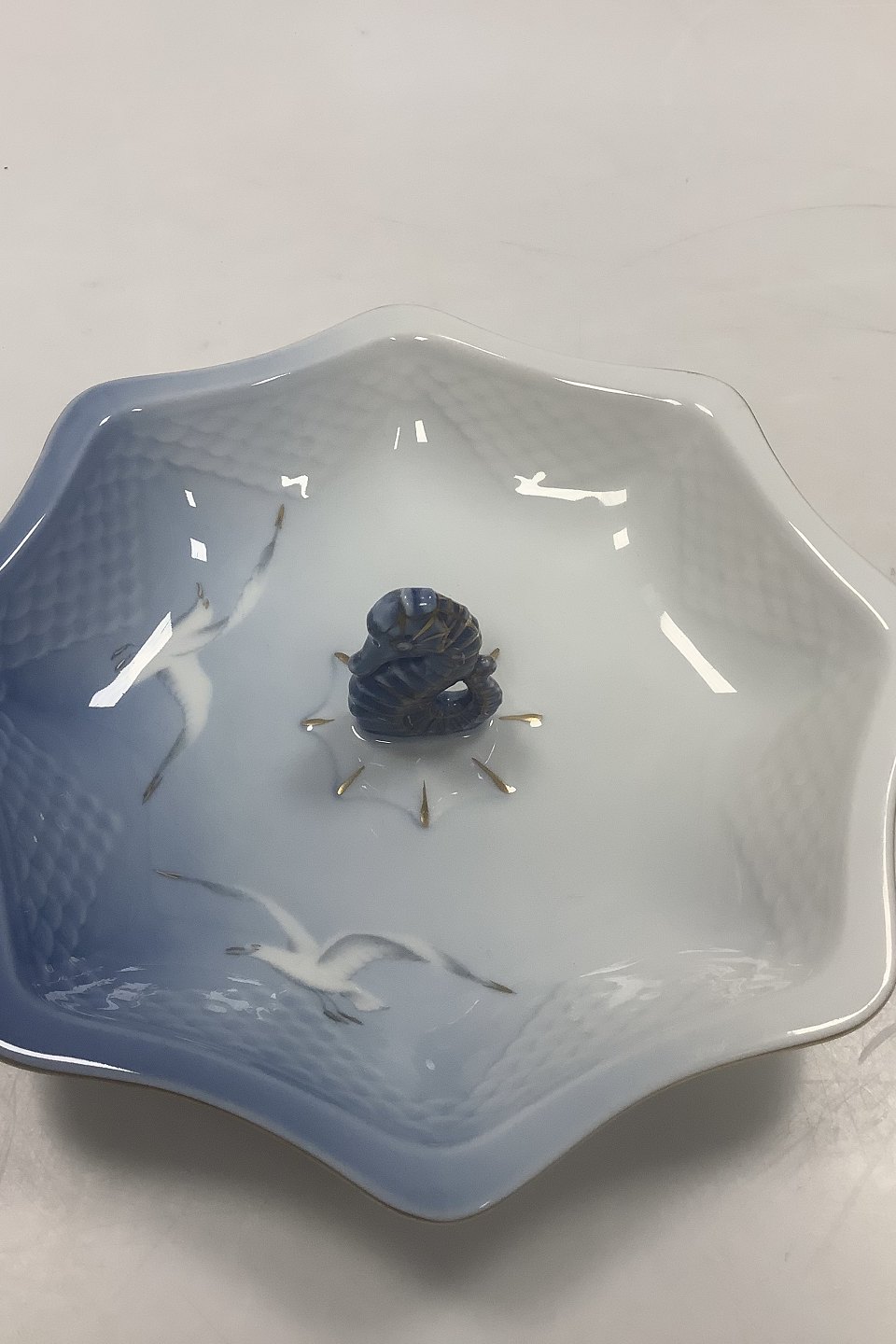 Bing og Grøndahl Måge med Guld Ottekantet fad med søhest No 217.