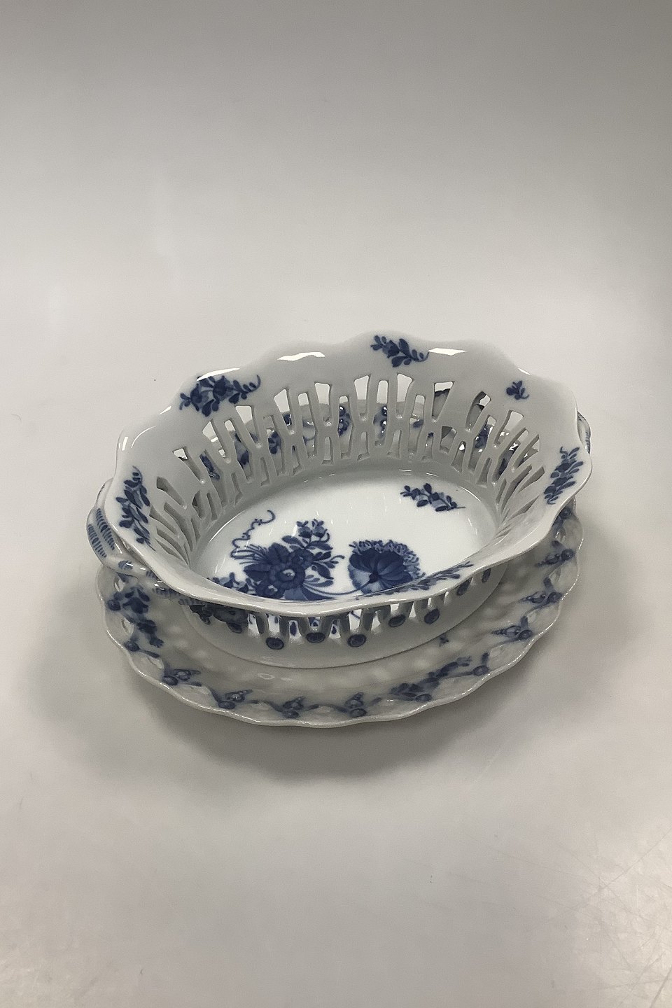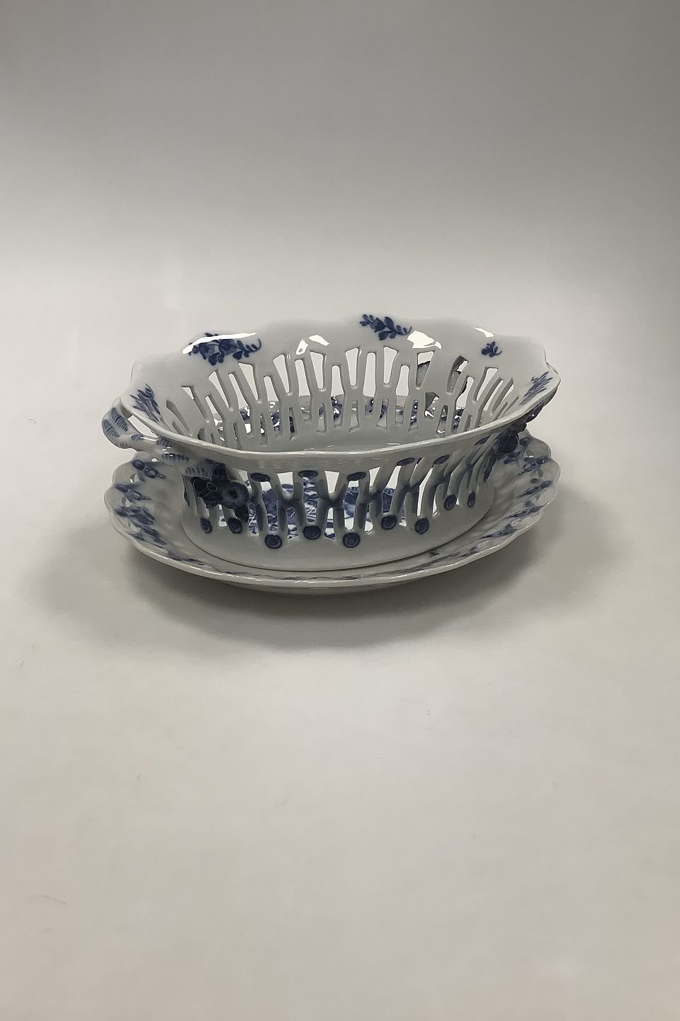 Royal Copenhagen Blå Blomst Svejfet Frugtkurv med fad No 1579 / 1580