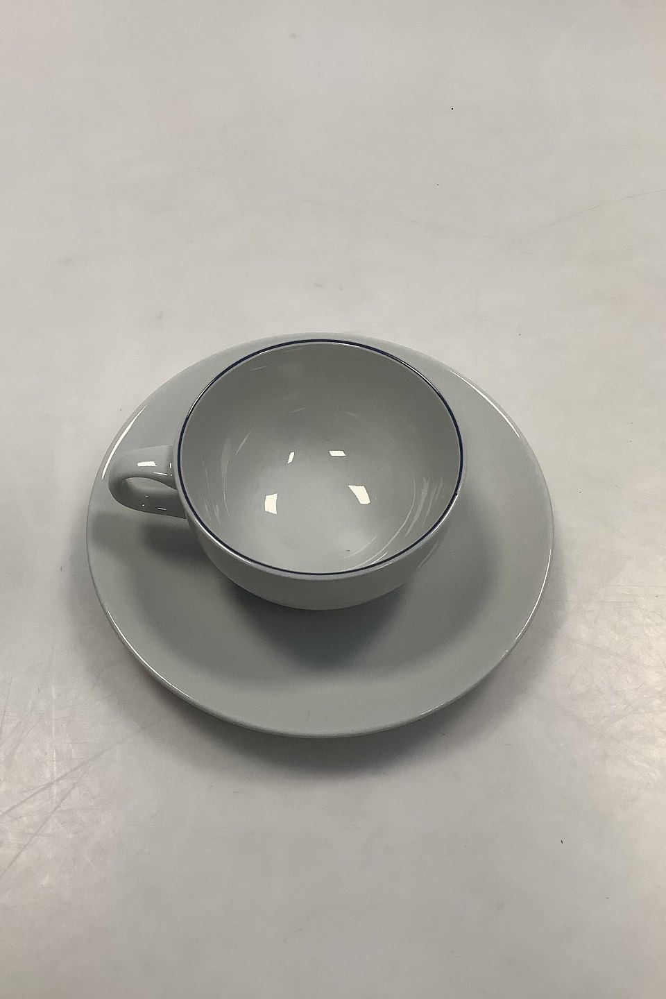 Royal Copenhagen Fajance Blåkant Kaffekop og Underkop No. 3043. Kop måler 6,8 cm / 2.68 in.