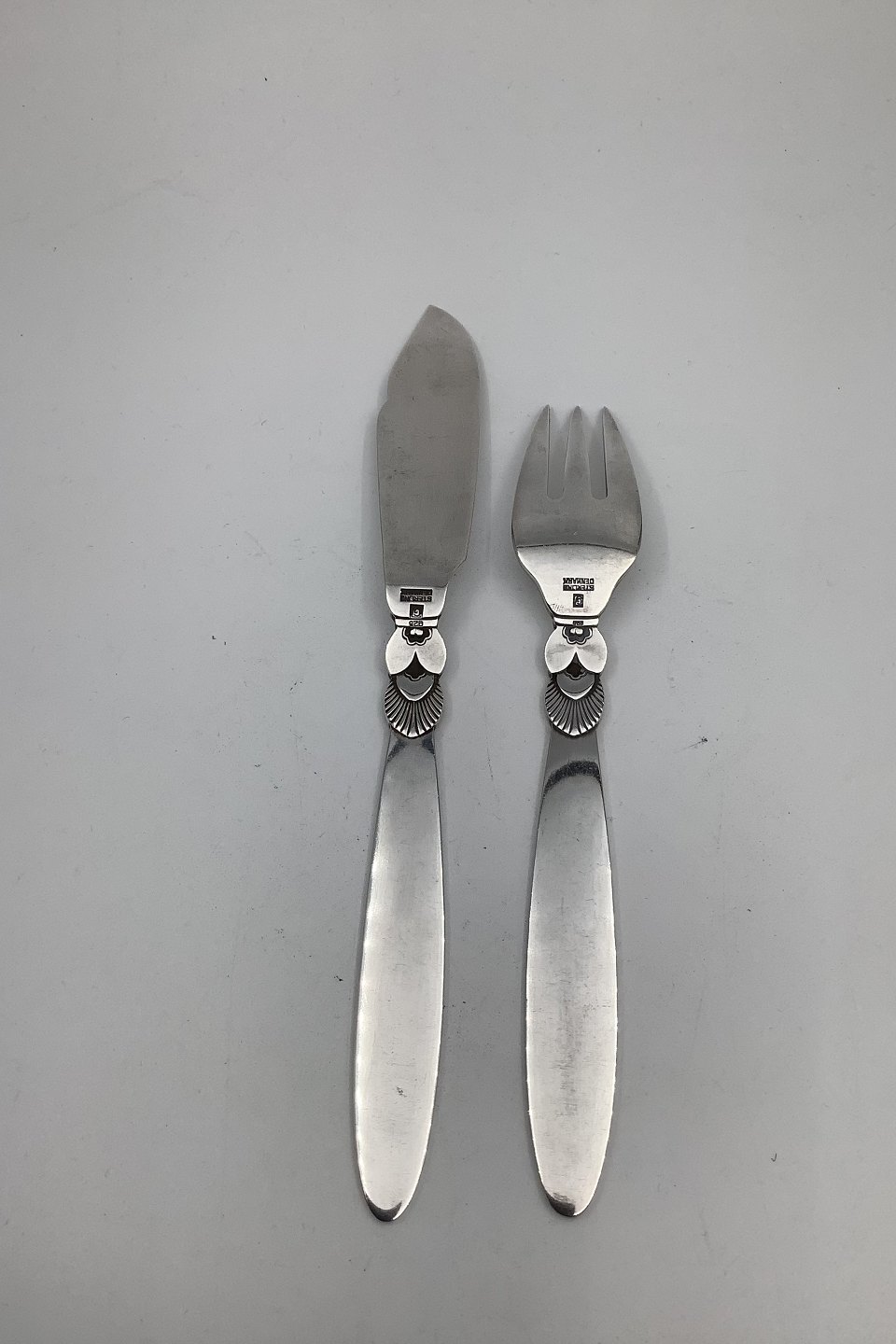 Vintage Sæt på 10 Georg Jensen Sterling Sølv Kaktus Fiskekniv og Gafler No 61 og 62