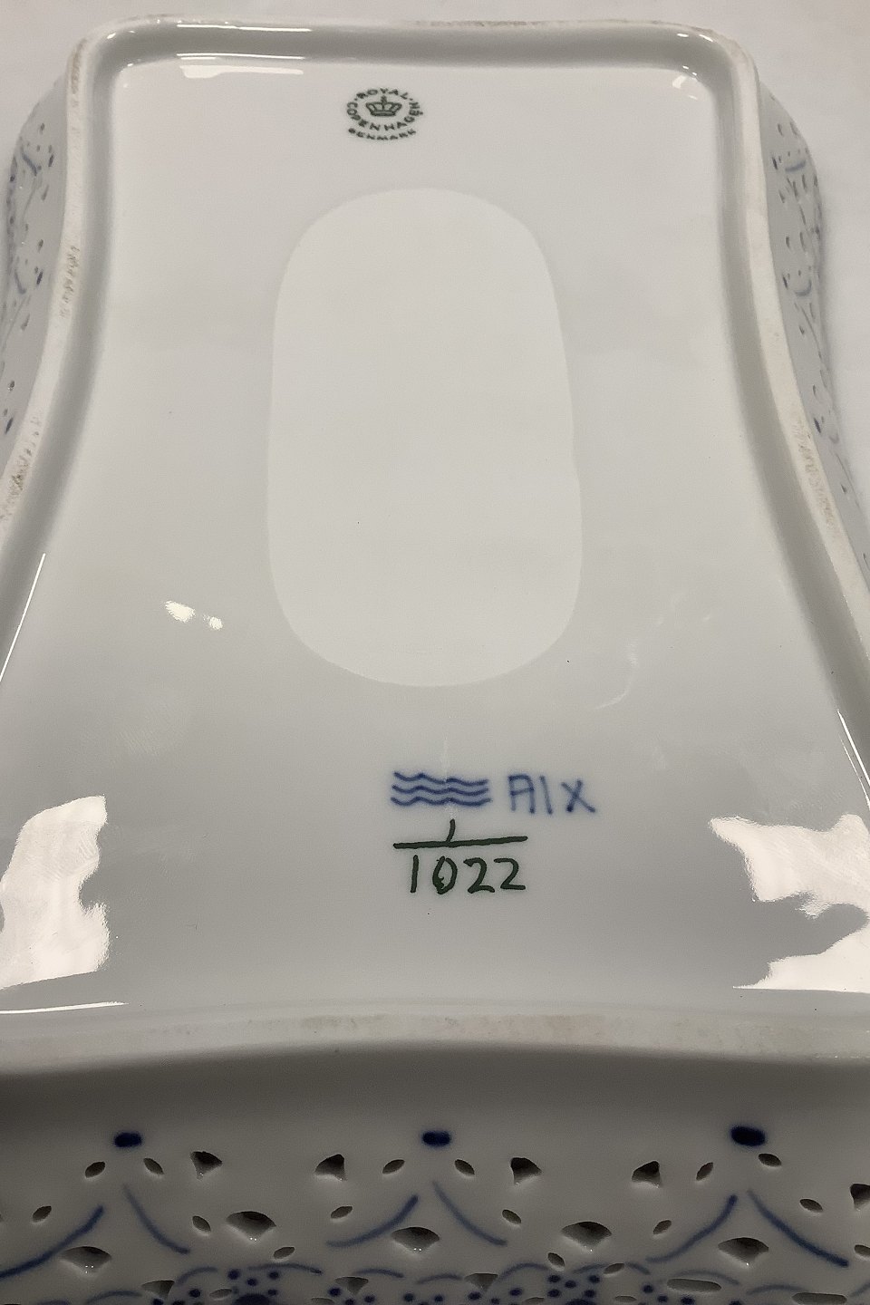 Royal Copenhagen Blue Fluted Full Lace Oblong Tray No 1122. 2nd Quality. Measures 23 cm x 16 cm / 9 1/16 in. x 6 19/64 in.