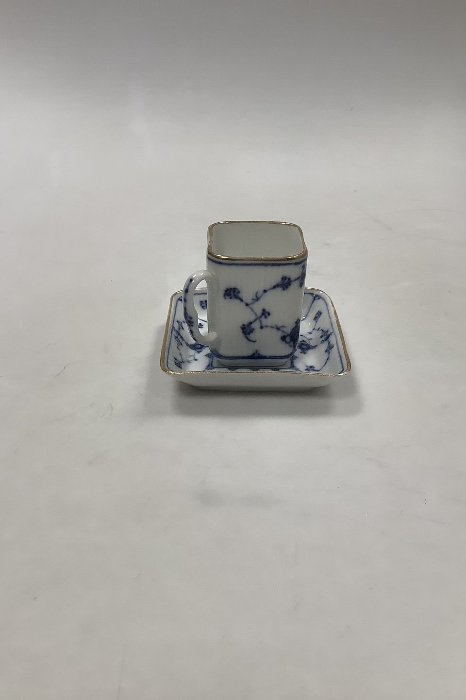 Bing og Grøndahl Blåmalet / Musselmalet Firkantet kop med underkop med guld