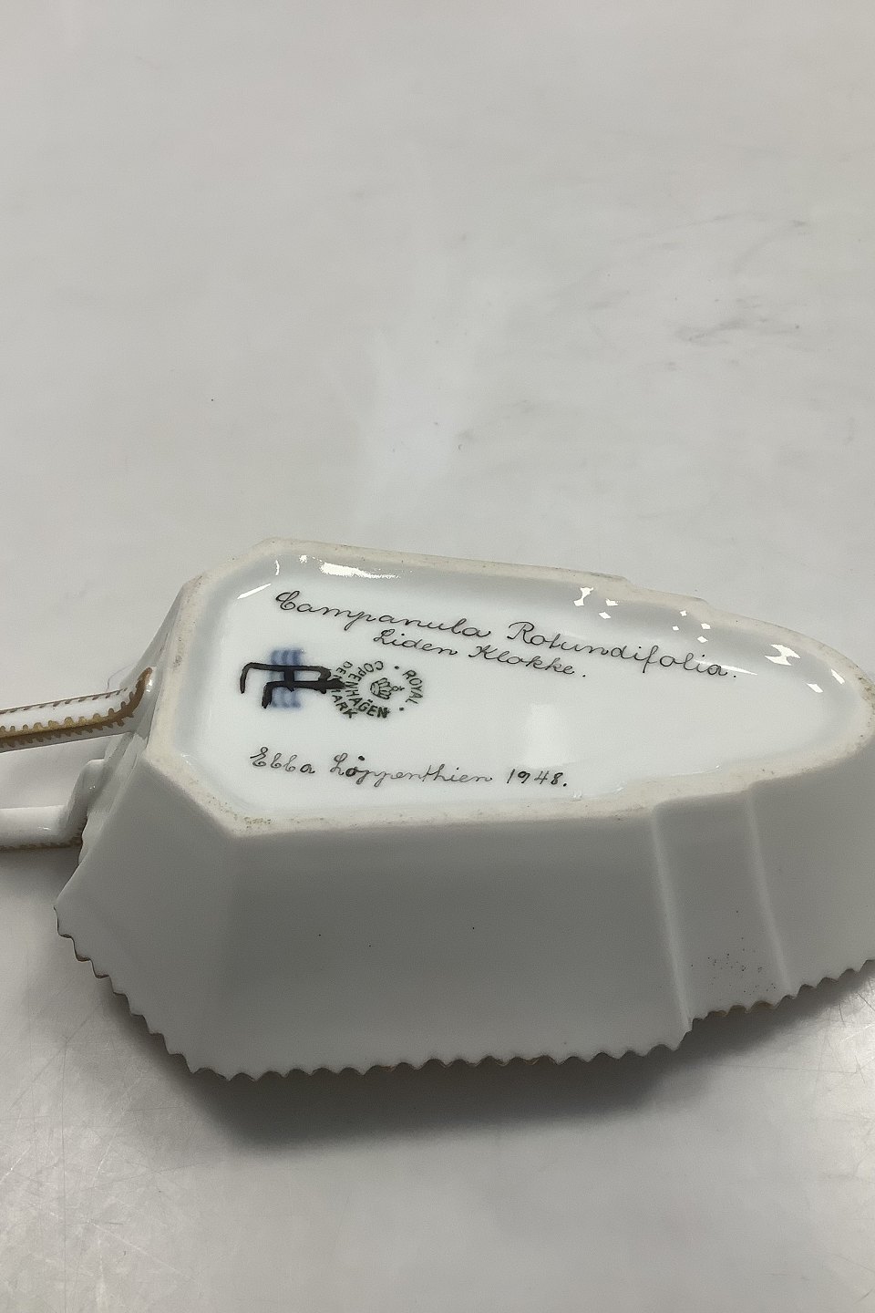 Royal Copenhagen Privatmalet Flora Danica Asiet med Håndtag No 3543. Latinsk Navn: Campanula Rotundifolia