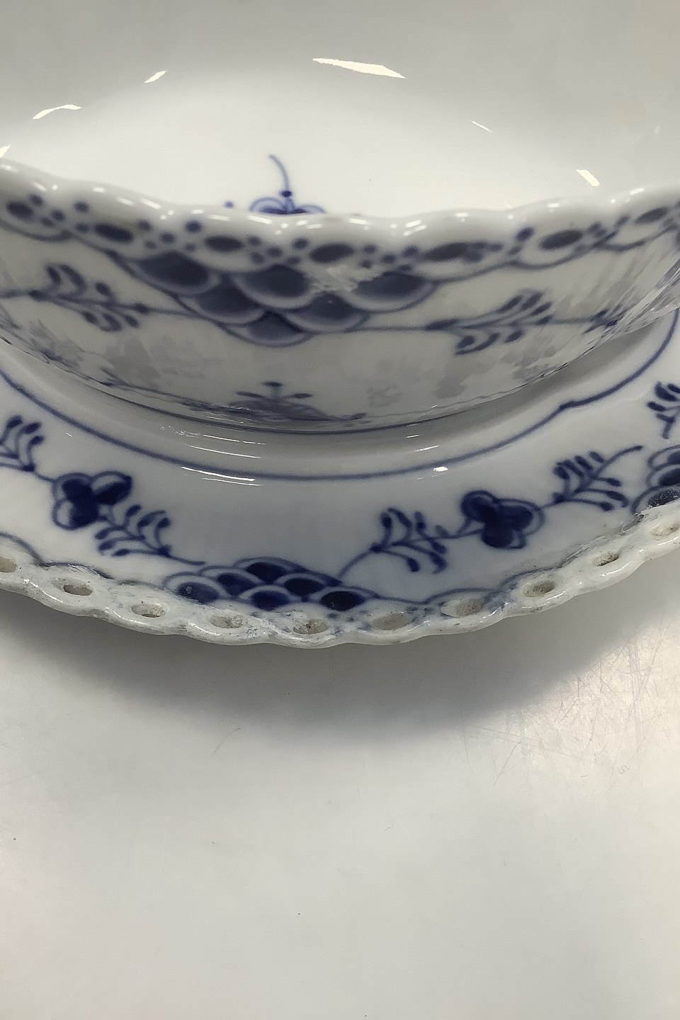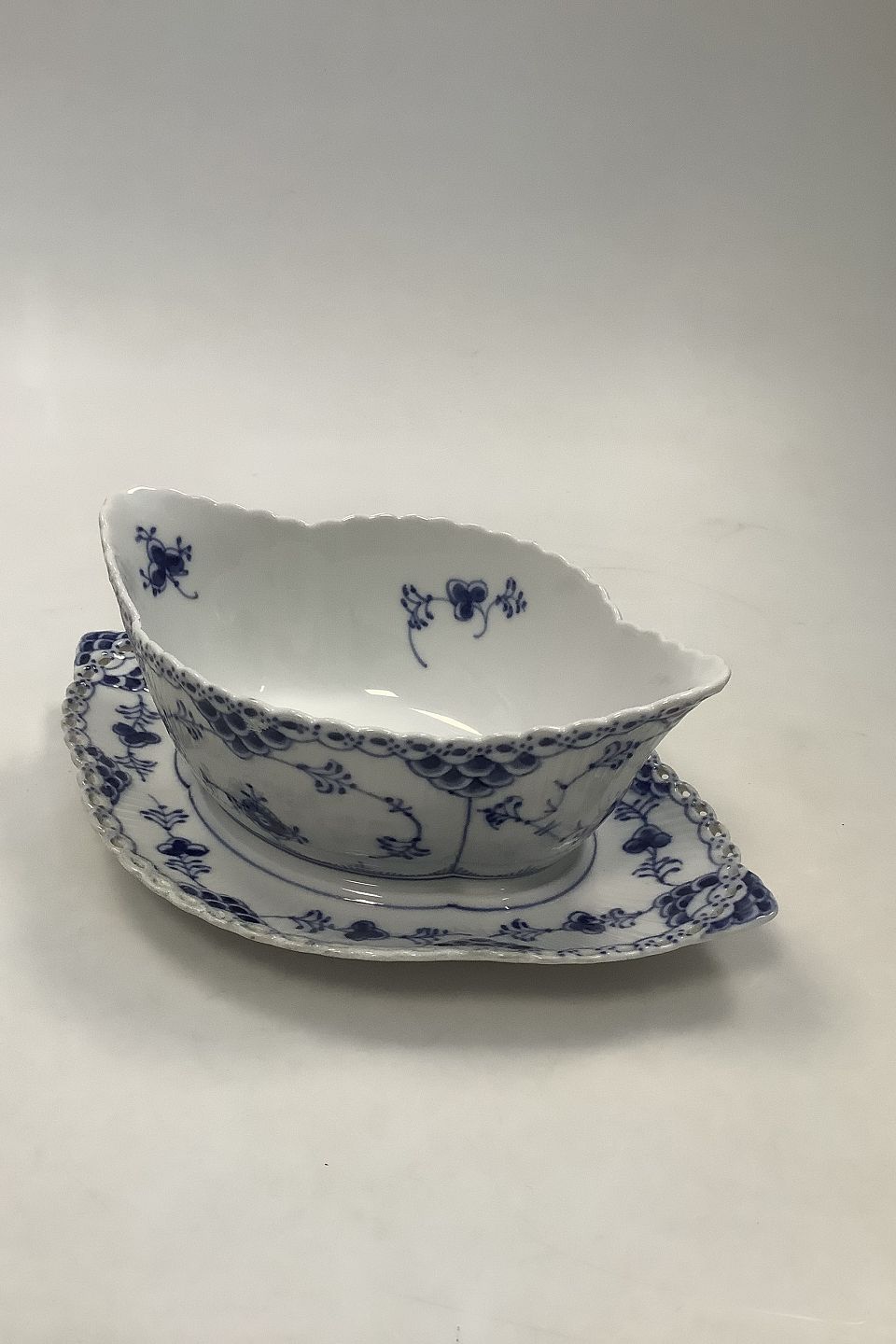 Royal Copenhagen Blue Fluted Full Lace Sauceboat with attached underplate No 1105. 24 cm (9 29/64")