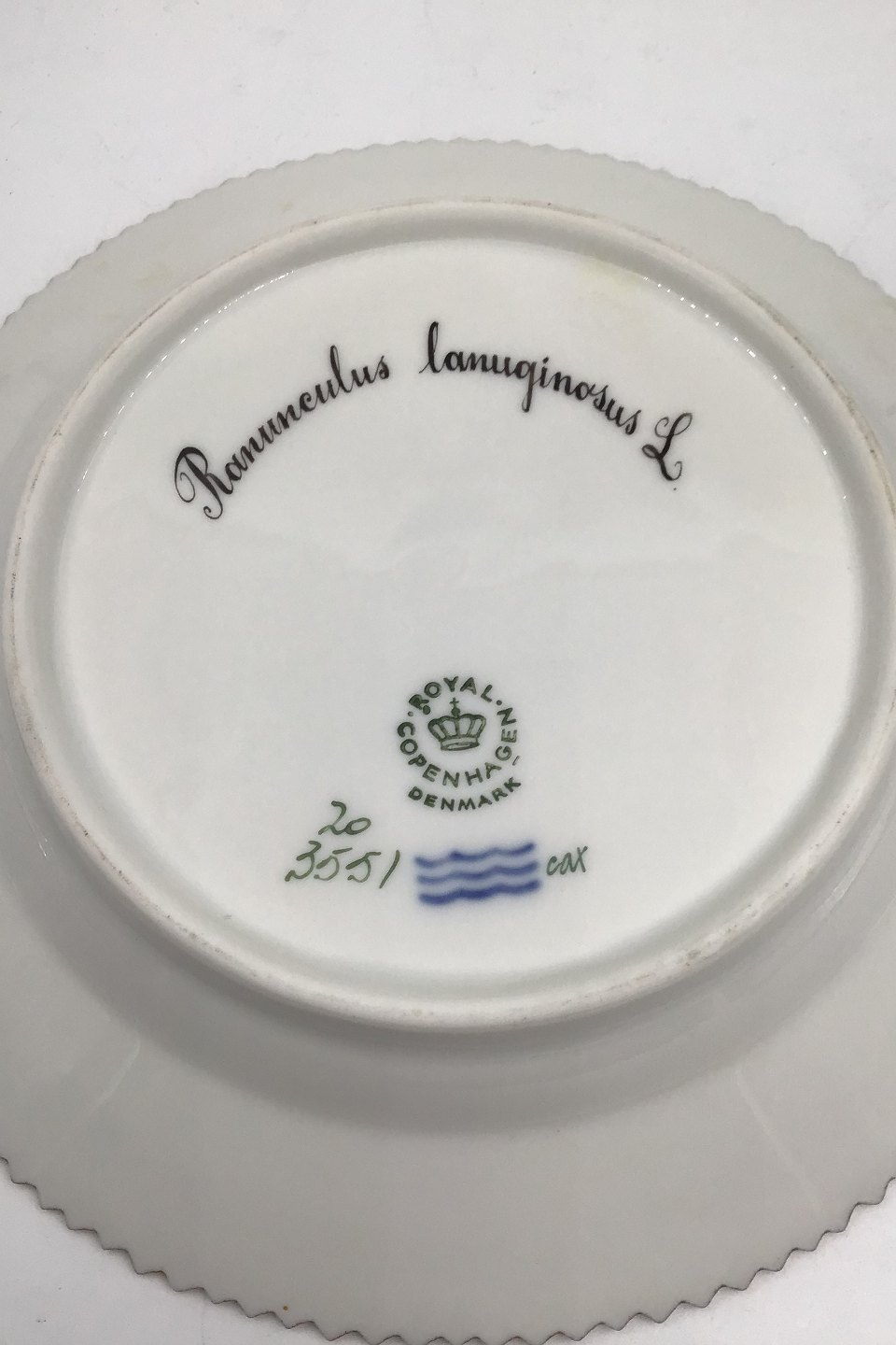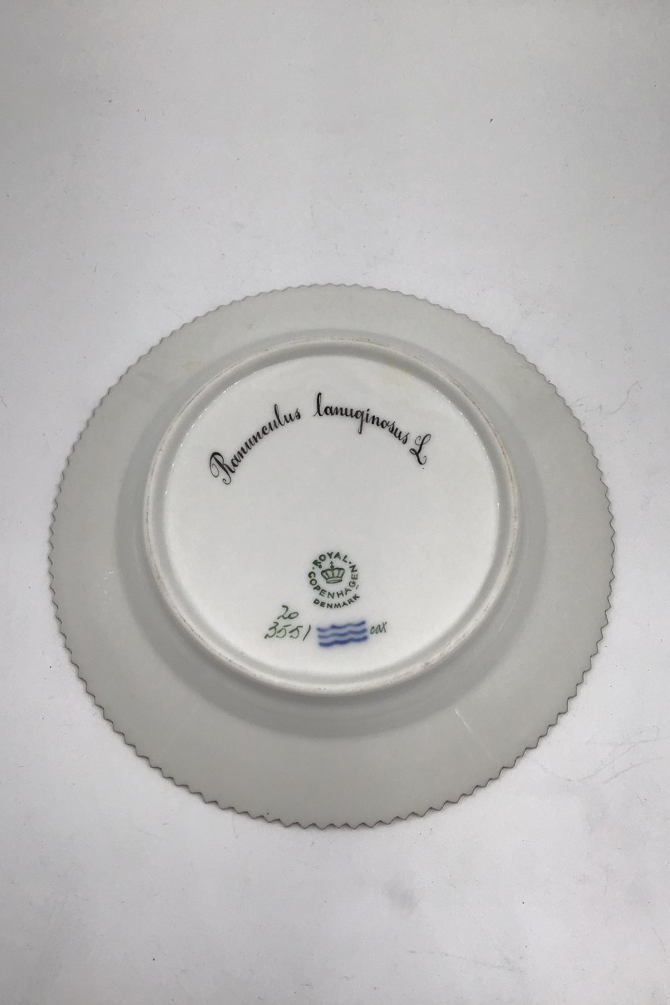 Royal Copenhagen Flora Danica Dessert Plate No 20/3551 1. quality. Latin Name: Ranunculus lanuginosus L. Measures 17 cm (6.69 inch)