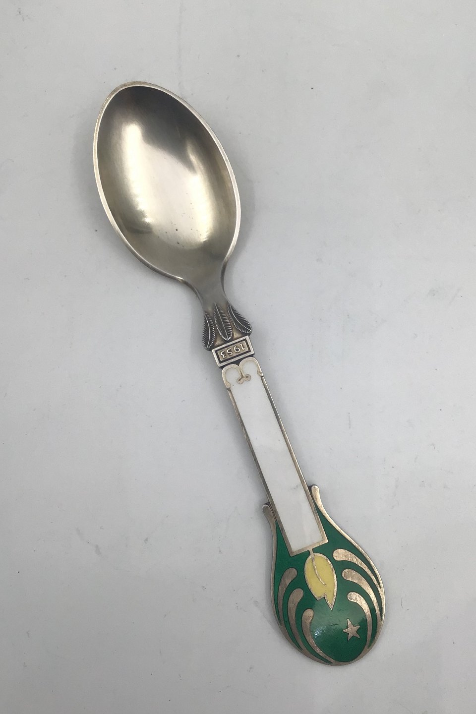 Grann & Laglye Sterling Silver Enamel Christmas Spoon 1953 Measures 15.5 cm (6.10 inch) (Gilding warn)