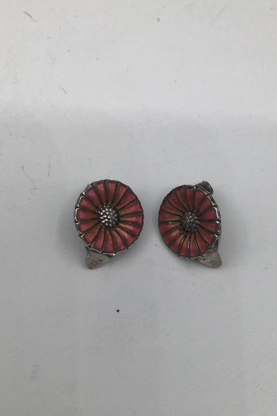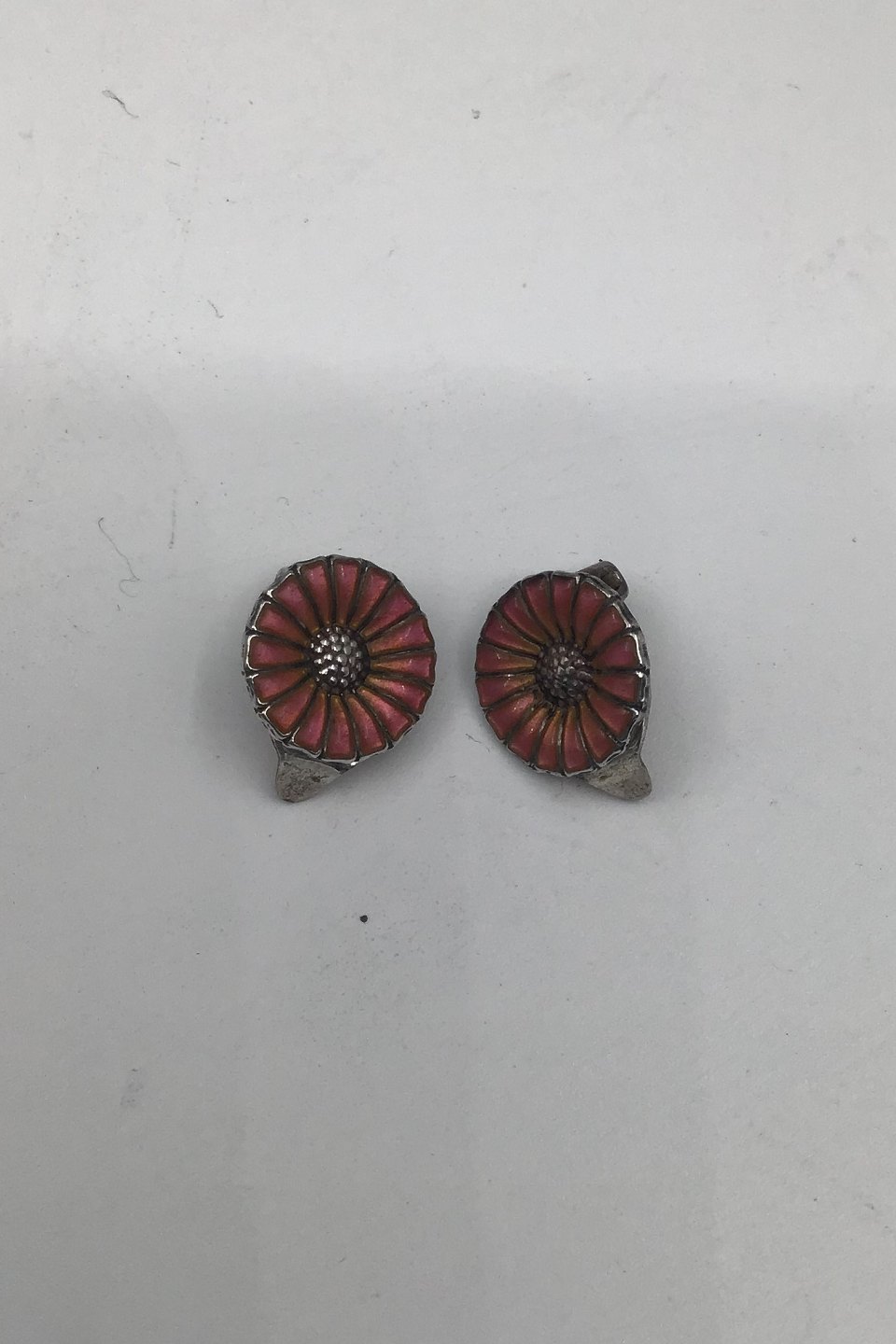 Georg Jensen Sterling Sølv Marguerit Øreclips, Pink. Måler Diam 1.2 cm (0.47 inch) Samlet vægt 3.2 gr (0.11 oz)