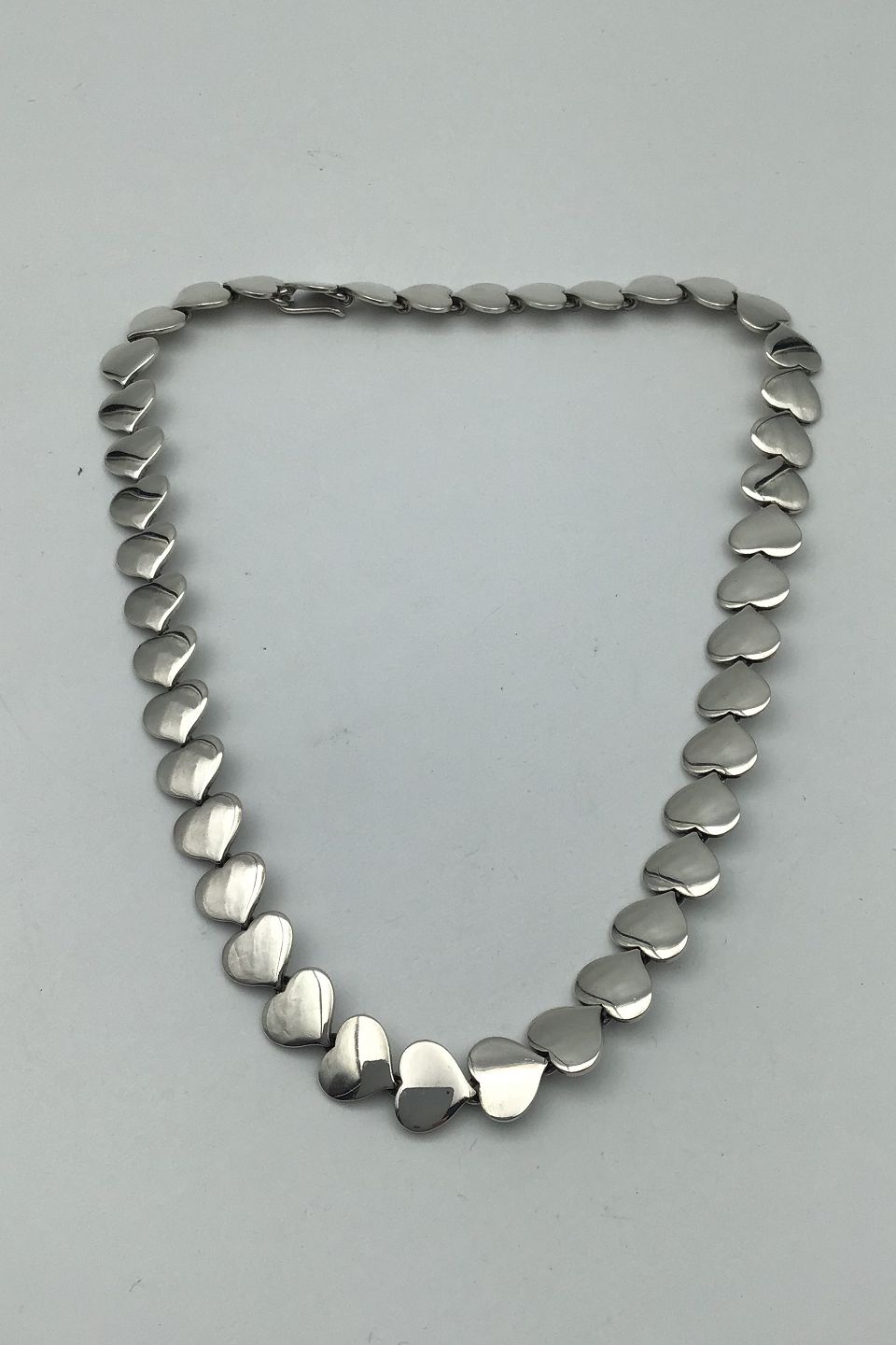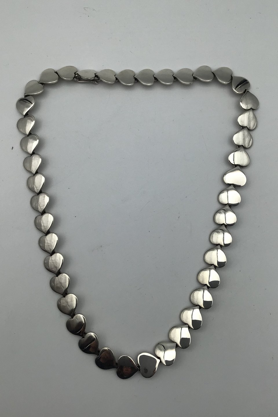 Hans Hansen Sterling Silver Heart Necklace Measures 40 cm (15.75 inch) Weight 61.04 gr (2.15 oz)