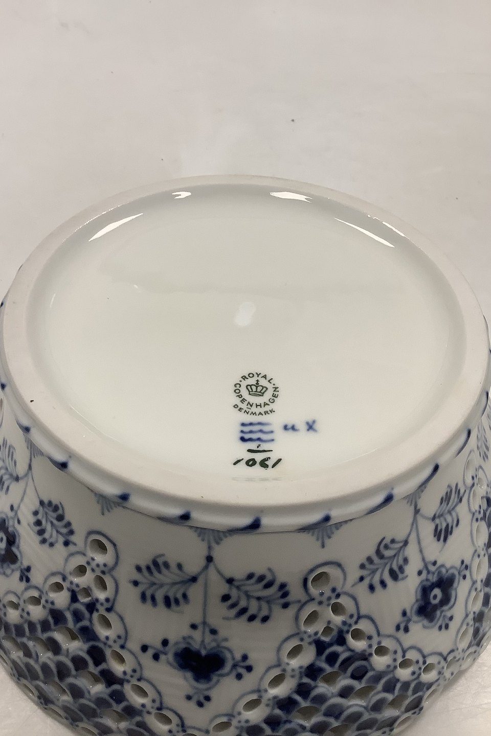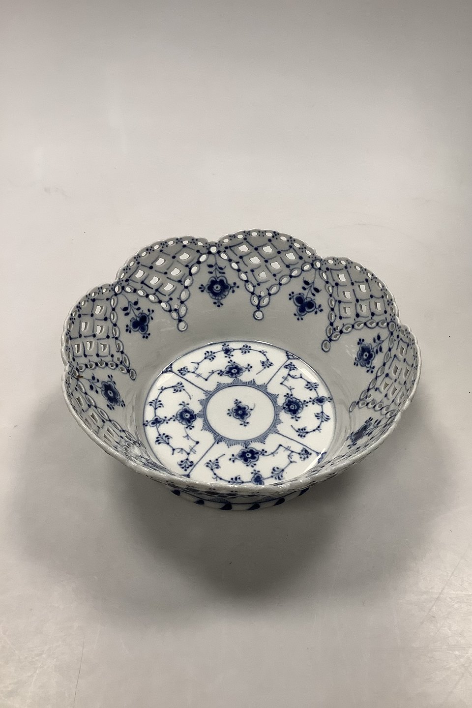 Royal Copenhagen Musselmalet Helblonde Frugtskål No. 1061. Måler 9 cm / 3.54 inch høj og 23cm dia / 9.06 inch