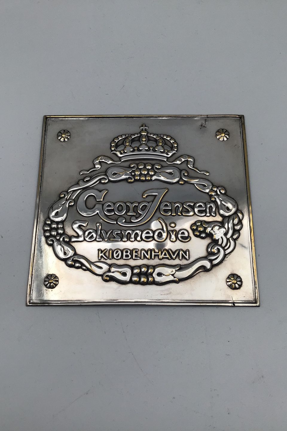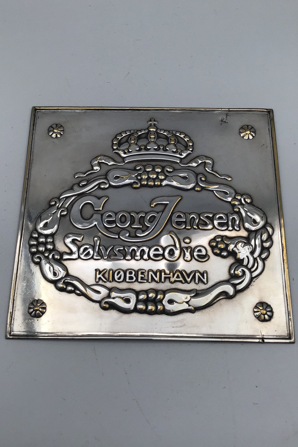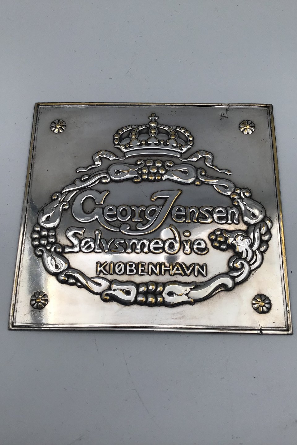 Georg Jensen Forsølvet Forhandler Plaquette Måler 11.5 cm x 12.3 cm (4.52 inch x 4.84 inch) (Brugsspor)