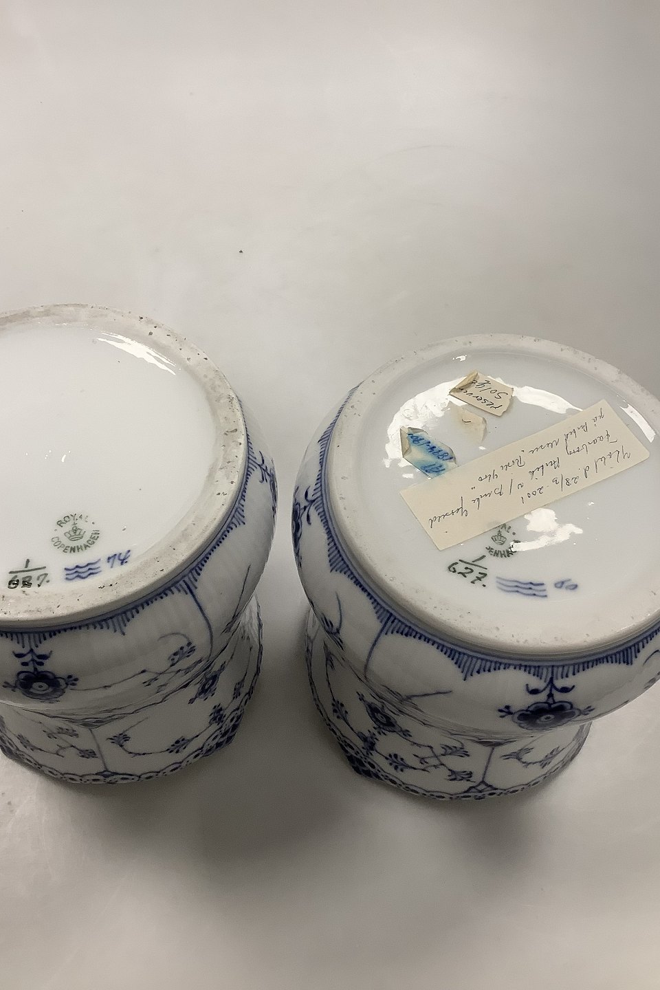 Pair of Royal Copenhagen Blue Fluted Half Lace Selleri Pots / Vases No 627
