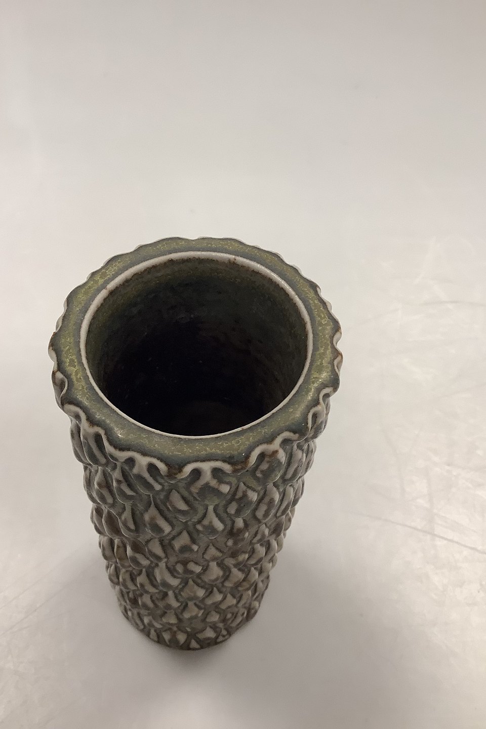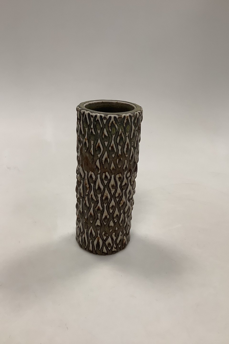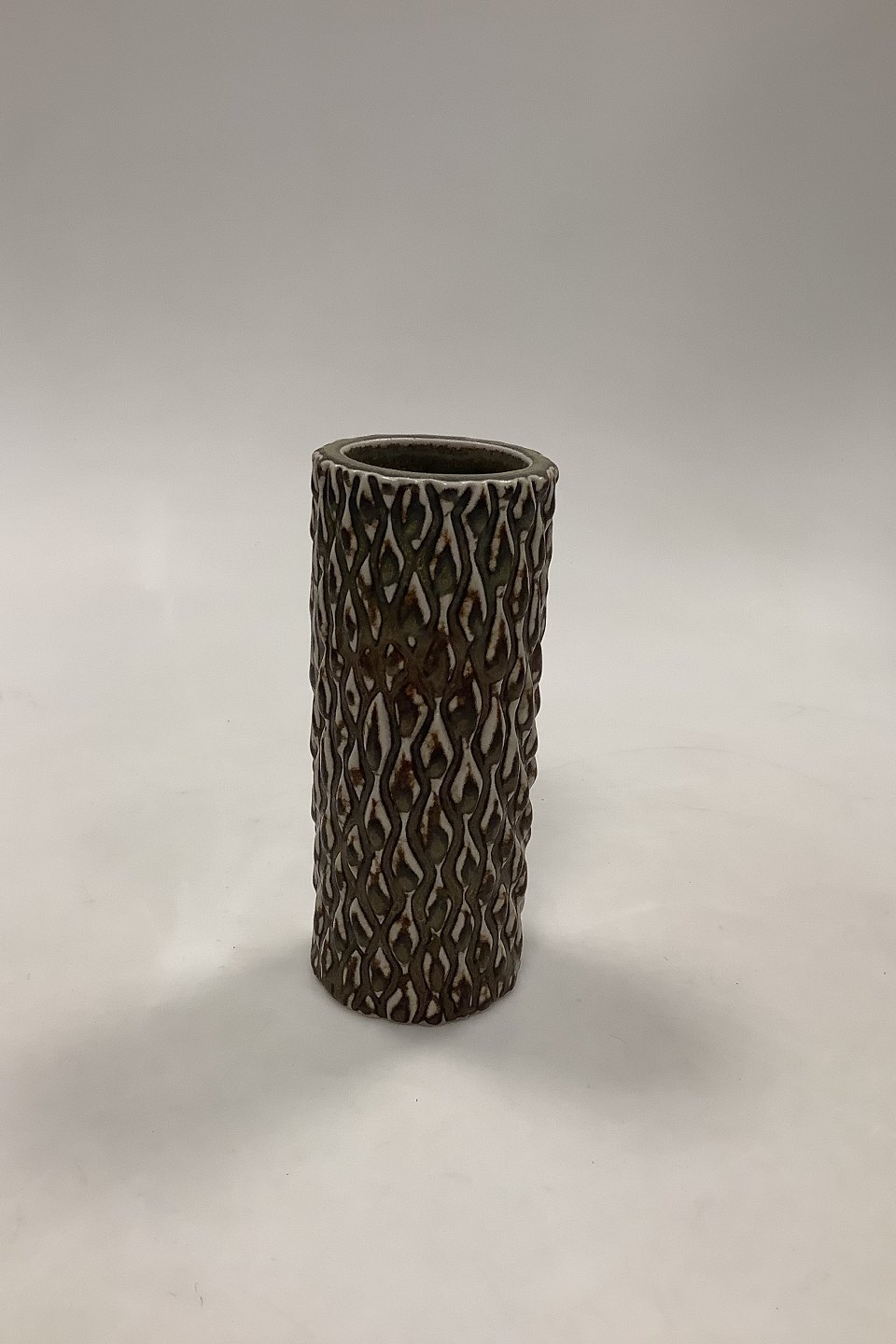 Royal Copenhagen Axel Salto Stentøjsvase No 20564 Cylindrisk vase modelleret i spirende stil, dekoreret med Solfatara glasur. H 17 cm Diam 7 cm