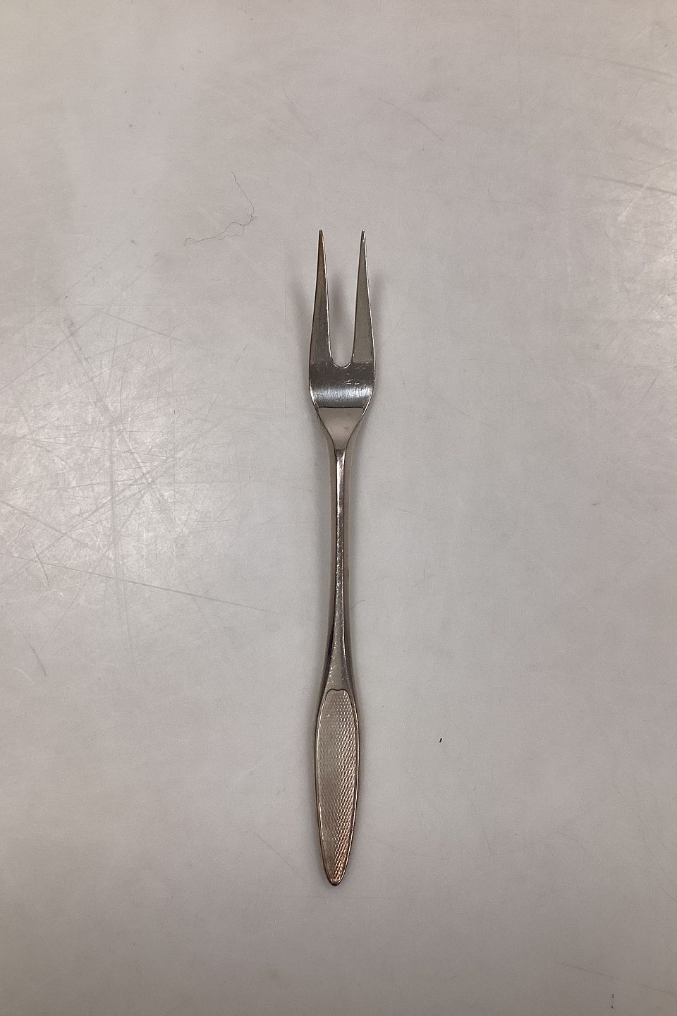 Kongelys Frigast/Gense sølvplet Pålægsgaffel. Måler 15,5 cm / 6.10 in.