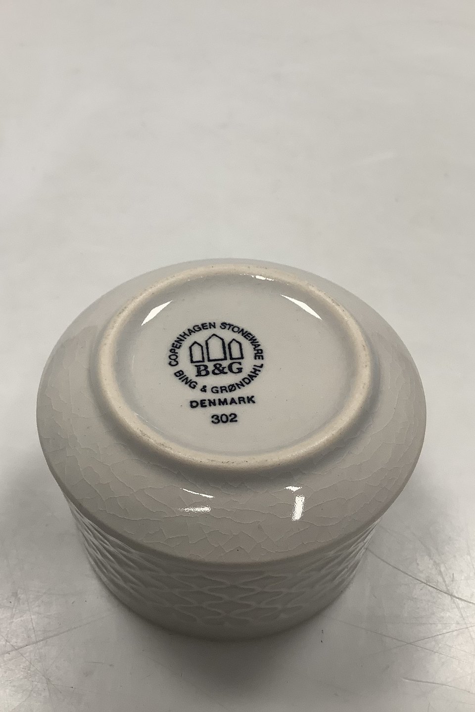 Bing & Grondahl/Kronjyden Stoneware White Cordial Sugar Bowl No 302. Measures 6 cm / 2 23/64 in. x 8 cm / 3 5/32 in. dia.