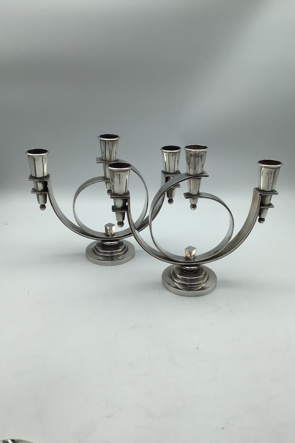 Georg Jensen Sterling Sølv Lysestager No. 670 Oscar Gundlach-Pedersen (2) Måler H 17 cm (6.69 inch) B 19.5 cm (7.67 inch) Samlet Vægt 1057 gr (37.28 oz)