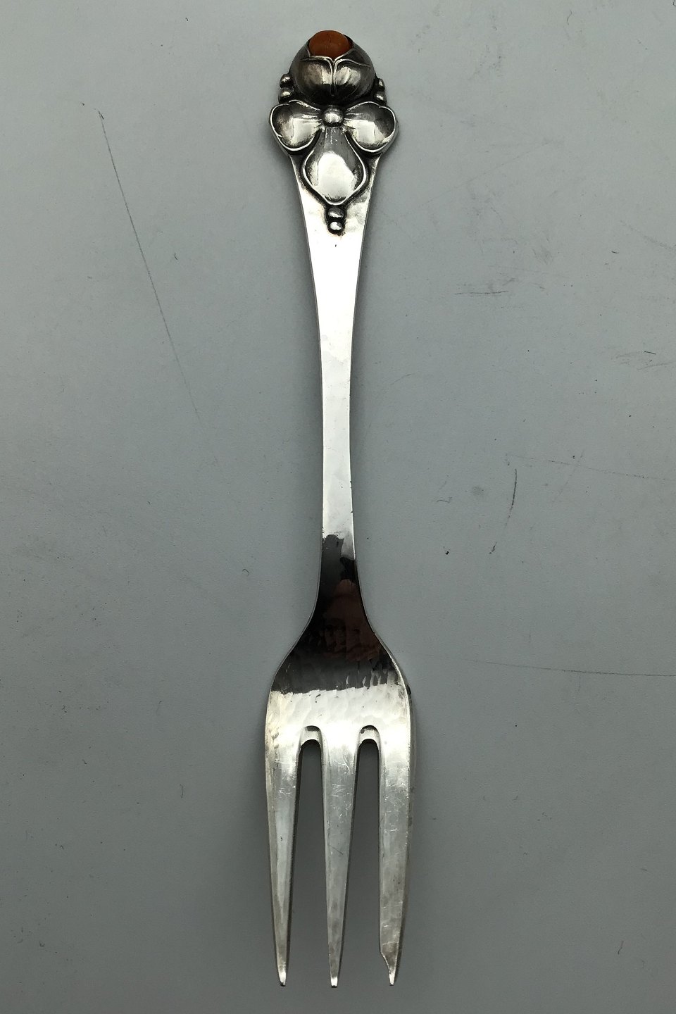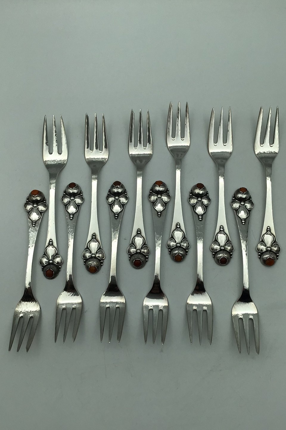 Sæt Dansk Arbejde (DTA) Sølv Kagegafler med Rav (12) Måler 14.3 cm (5.62 inch)