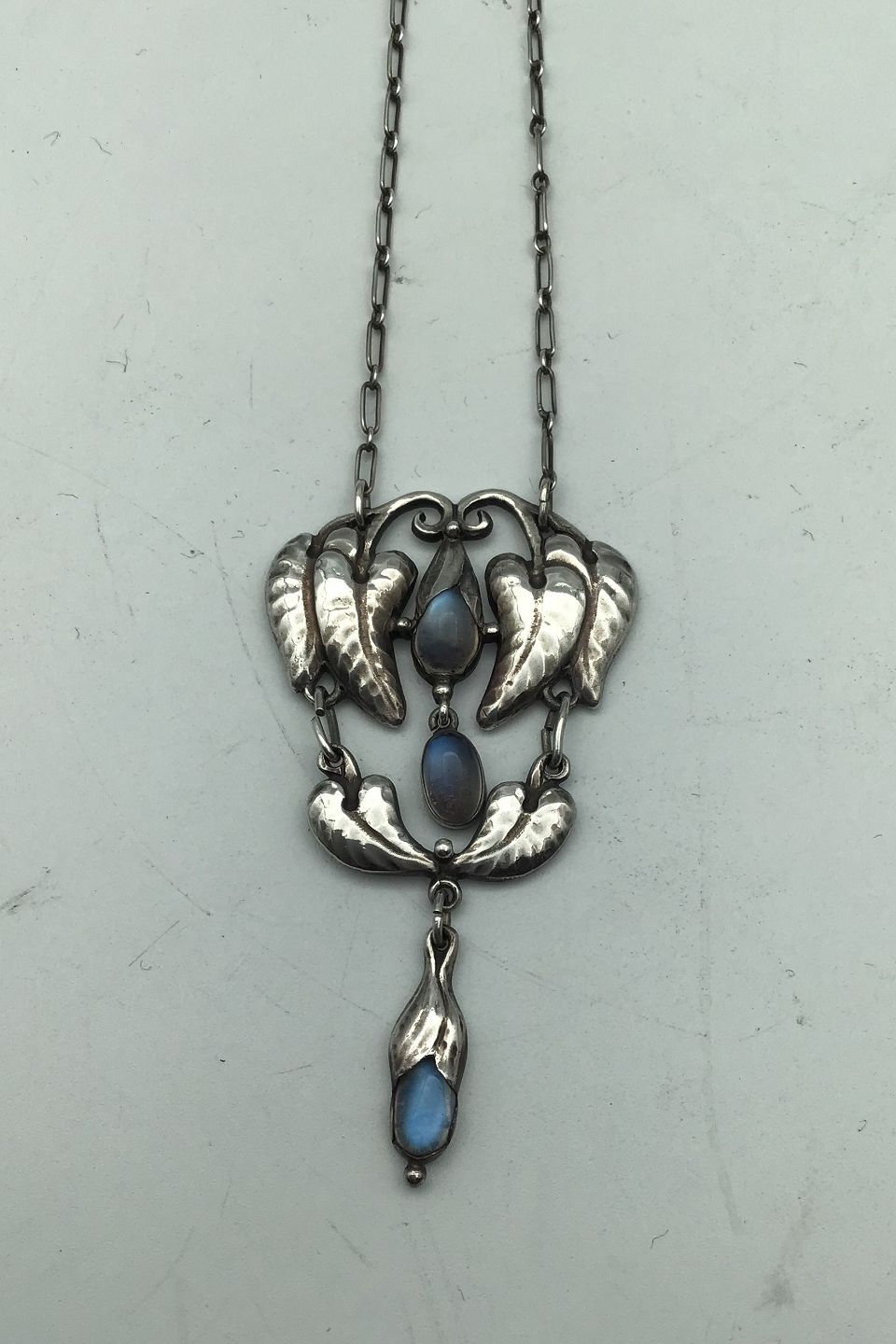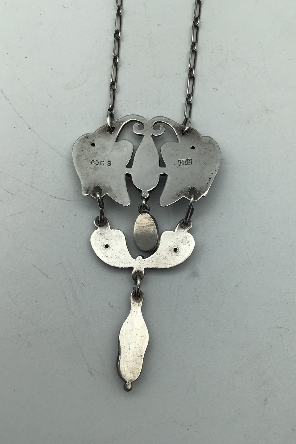 C.L. Severin Sørensen Silver Necklace (Moonstone) Measures Pendant 6.5 cm x 3.5 cm (2.55 inch x 1.37 inch) Chain 44 cm (8.66 inch)