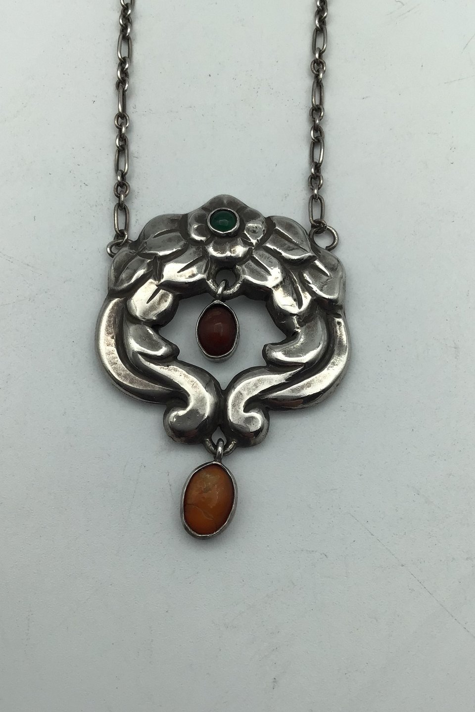 C.L. Severin Sørensen Silver Necklace (Amber) Measures Pendant 4.8 cm x 3.5 cm (1.88 inch x 1.37 inch) Chain 44 cm (8.66 inch) (NB Altered from brooch)
