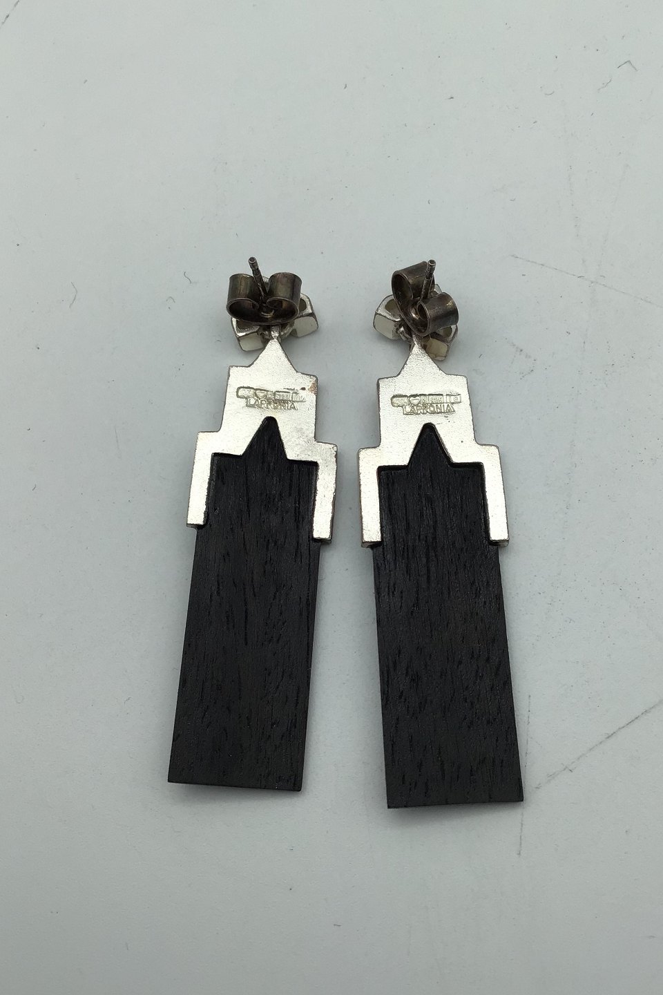 Lapponia Sterling Silver Ebony Ear Studs Björn Weckström Measures 5.8 cm (2.28 inch) Combined weight 9.0 gr (0.32 oz)