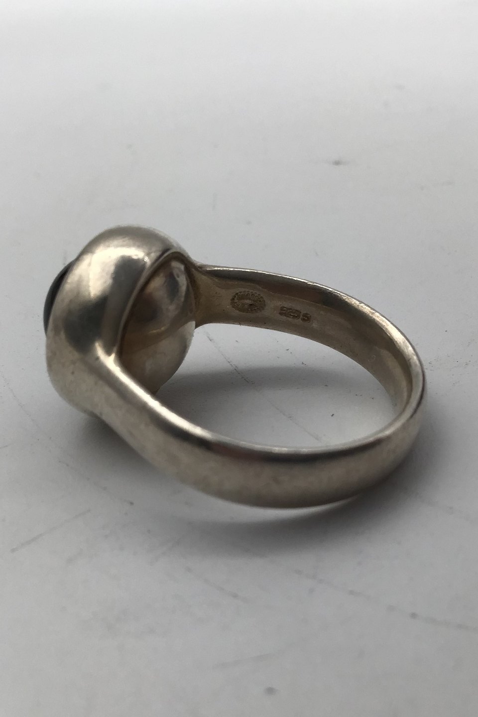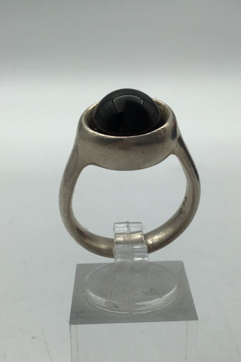 Georg Jensen Sterling Sølv Ring No. 473 Sort Agat Sphere Regitze Overgaard. Måler Ring Str. 56 (US 7½) Vægt 9.4 gr (0.33 oz)