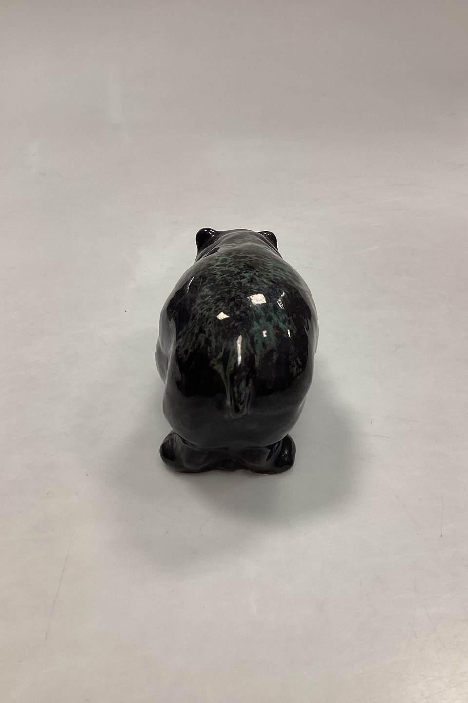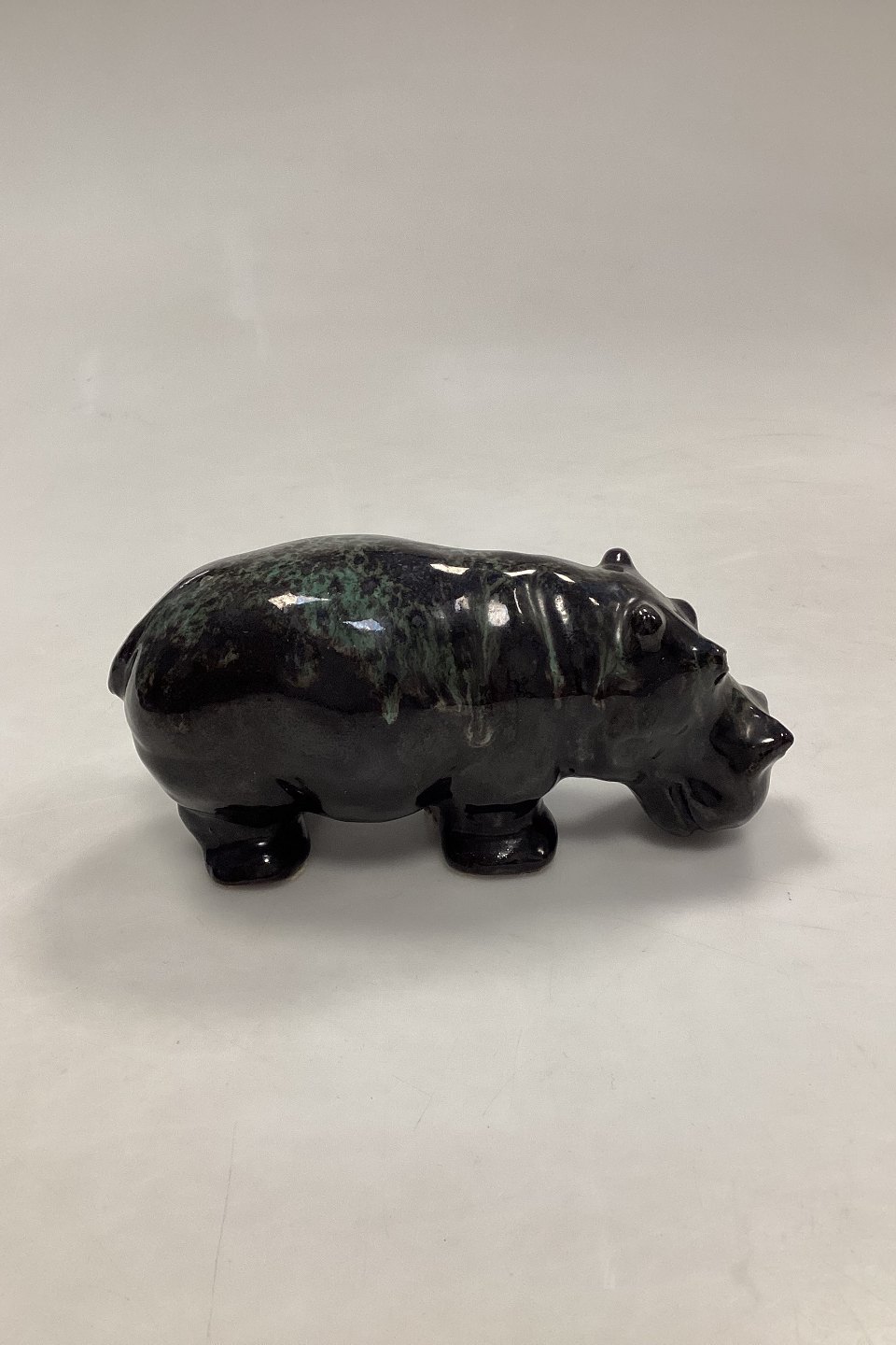 Flodhest i Stentøj af Poul Kyhn. Glasering i mørkebrun og grøn.