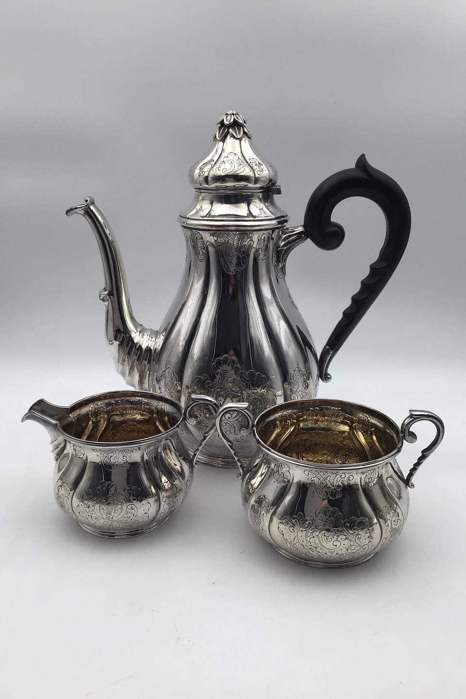 Svend Toxværd Sølv Kaffesæt (3) Måler Kaffekande H 25 cm (9.84 inch) Fløde/Sukker 8 cm (3.14 inch) Samlet vægt 1007 gr (35.52 oz)