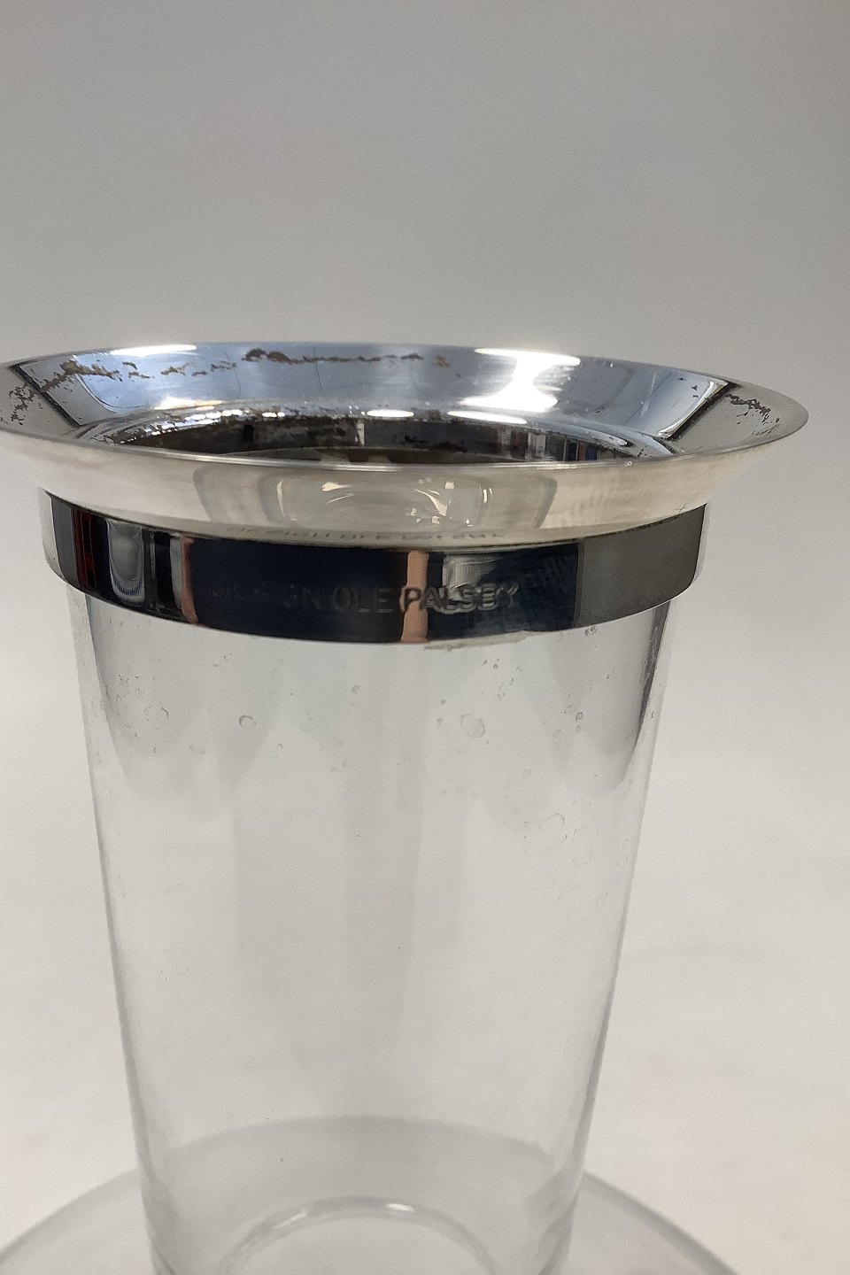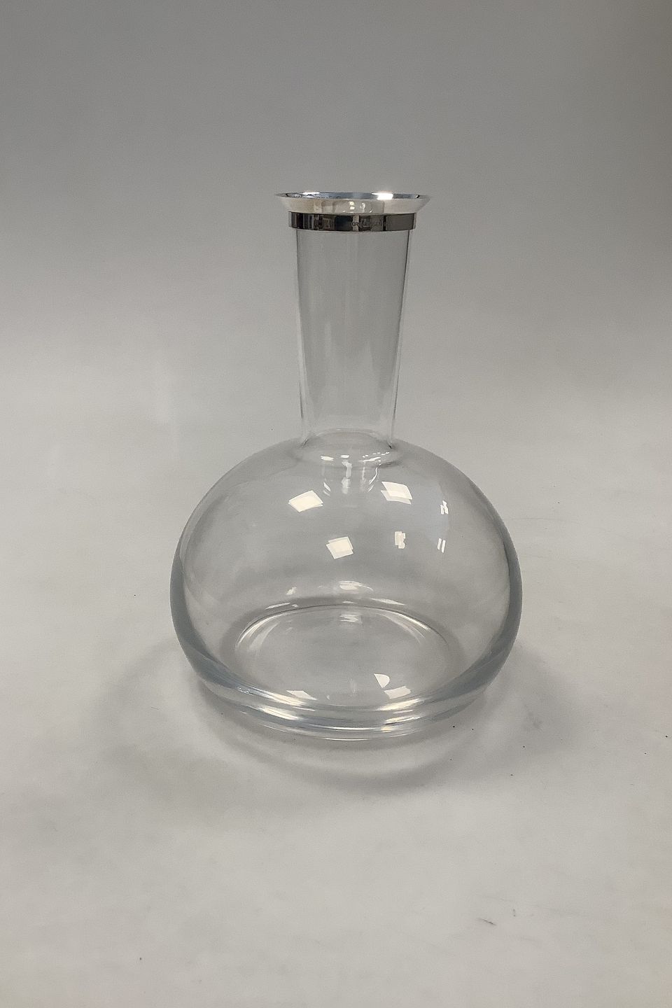 Georg Jensen / Holmegaard Wine Pitcher by Ole Palsby. Glass with Sterling Silver Mounted Top. 23cm / 9.06 inch tall.
