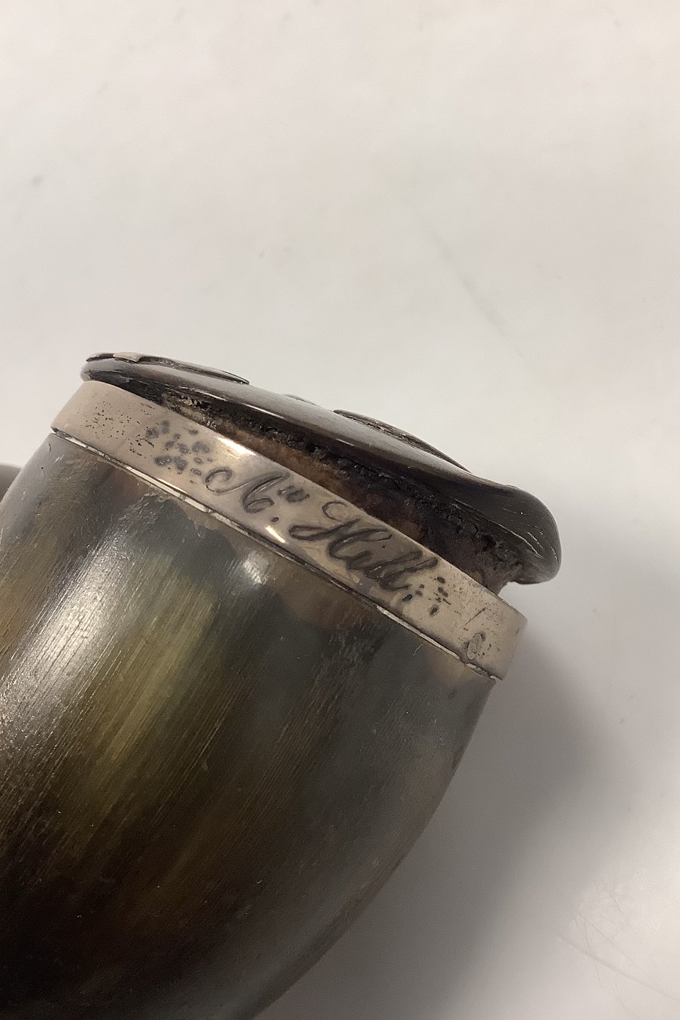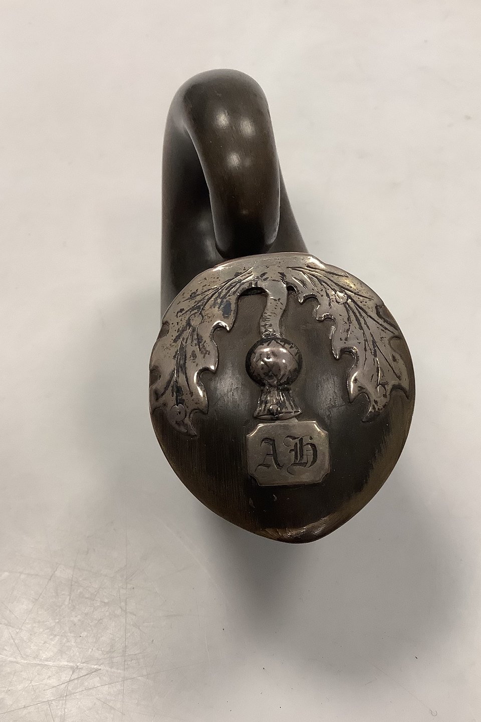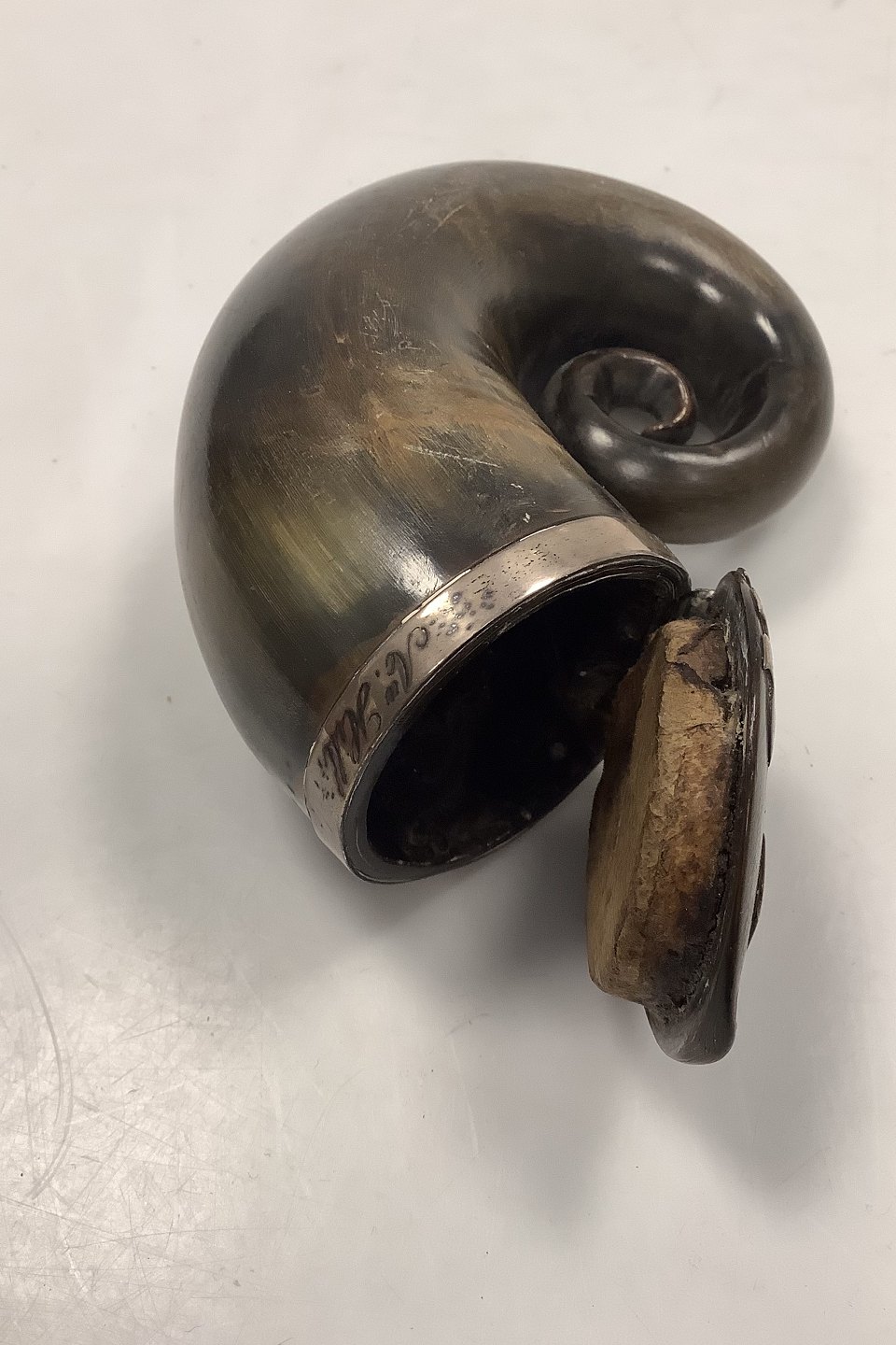 Antik Tobaksdåse udført i horn med sølv dekoration muligvis fra Island