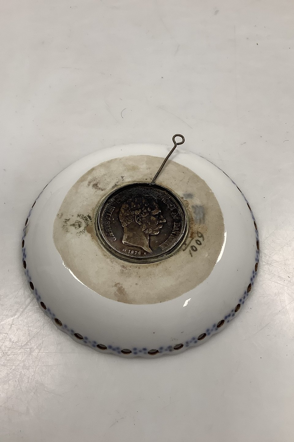 Royal Copenhagen Blue Fluted Full Lace Candle Drip Cup with mounted 2-Crown coin. No 1009.