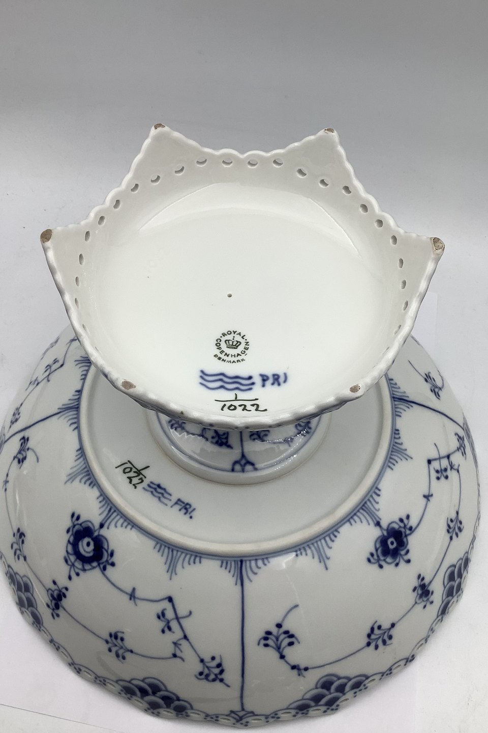 Royal Copenhagen Blue Fluted Full Lace Cake Bowl on foot No. 1022