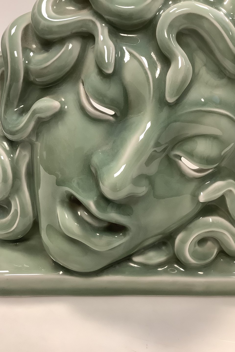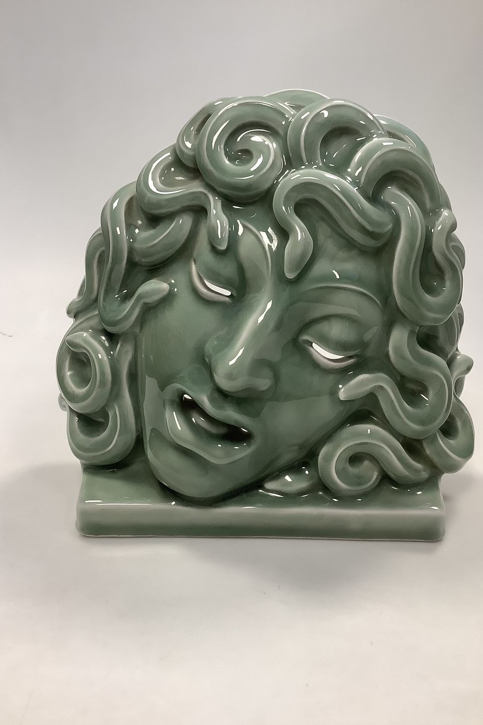 Unique Royal Copenhagen Green Celadon Mask, Medusa, Designed by Hans Henrik Hansen 1927, No 2950.