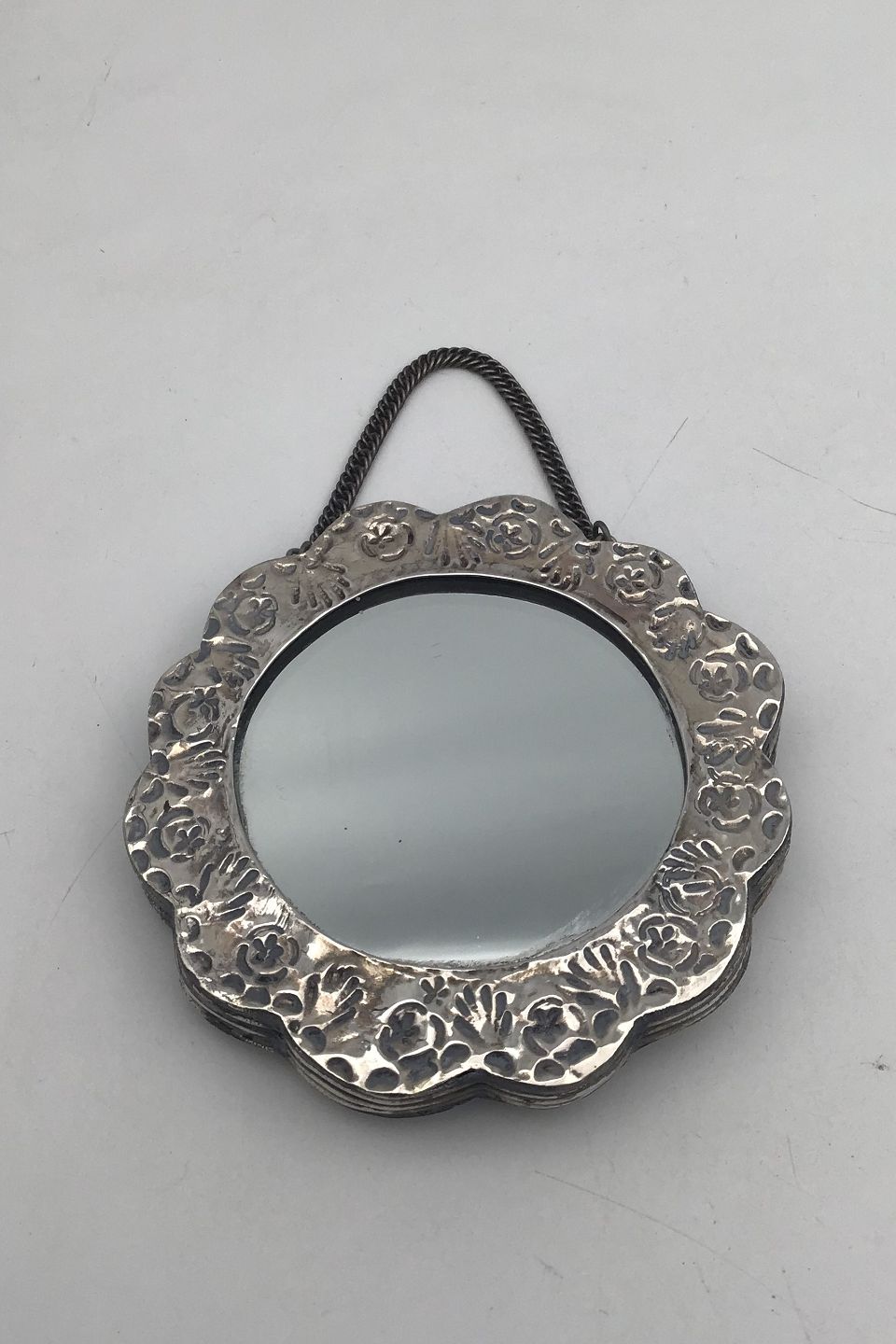 Sølv Taskespejl med kæde Måler Diam 9.5 cm (3.74 inch) Vægt 113 gr (4 oz) (OBS Ikke Stemplet)